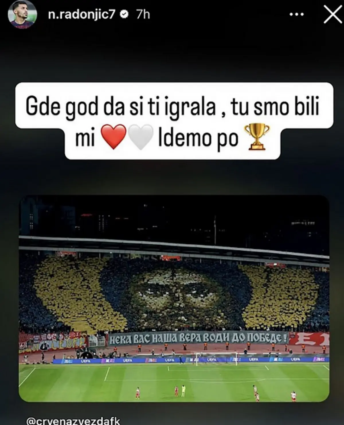 "Gde god da si ti igrala, tu smo bili mi. Idemo po titulu", napisao je Radonjić.