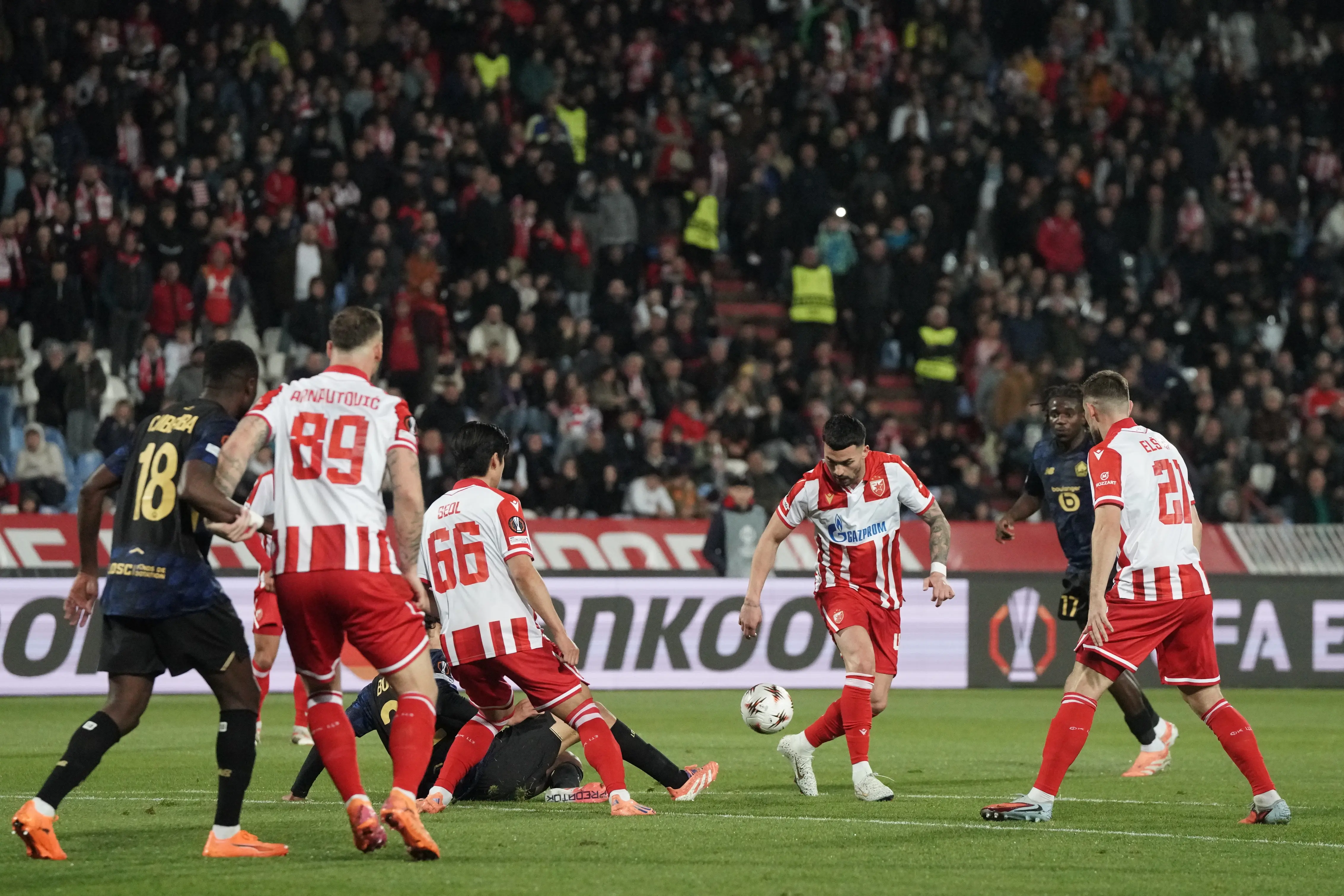 Foto: TANJUGMILOŠ MILIVOJEVIĆFudbaleri Crvene zvezde savladali su večeras Lil rezultatom 1:0 u utakmici četvrtog kola Lige Evrope.