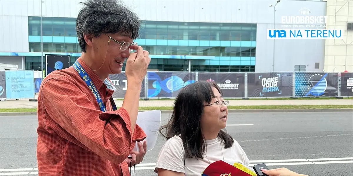 Da naša reprezentacija ima navijače širom sveta, potvrđuje i ovaj par iz Japana. Oni su stigli u Rigu kako bi pogledali meč naše selekcije sa Portugalom, ostaju do sutra, ali veruju u prolaz Srbije, pa će se tako vratiti za četvrtfinale i ostati u Letoniji do kraja turnira.