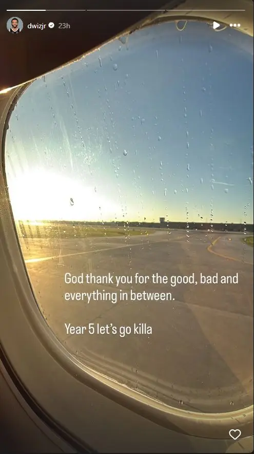 "Zahvalan sam Bogu na dobrom, lošem i svemu između. Vreme je za godinu broj pet. Hajde da pokidamo", napisao je na Instagramu, uz fotografiju iz aviona, koji poleće ka Beogradu.