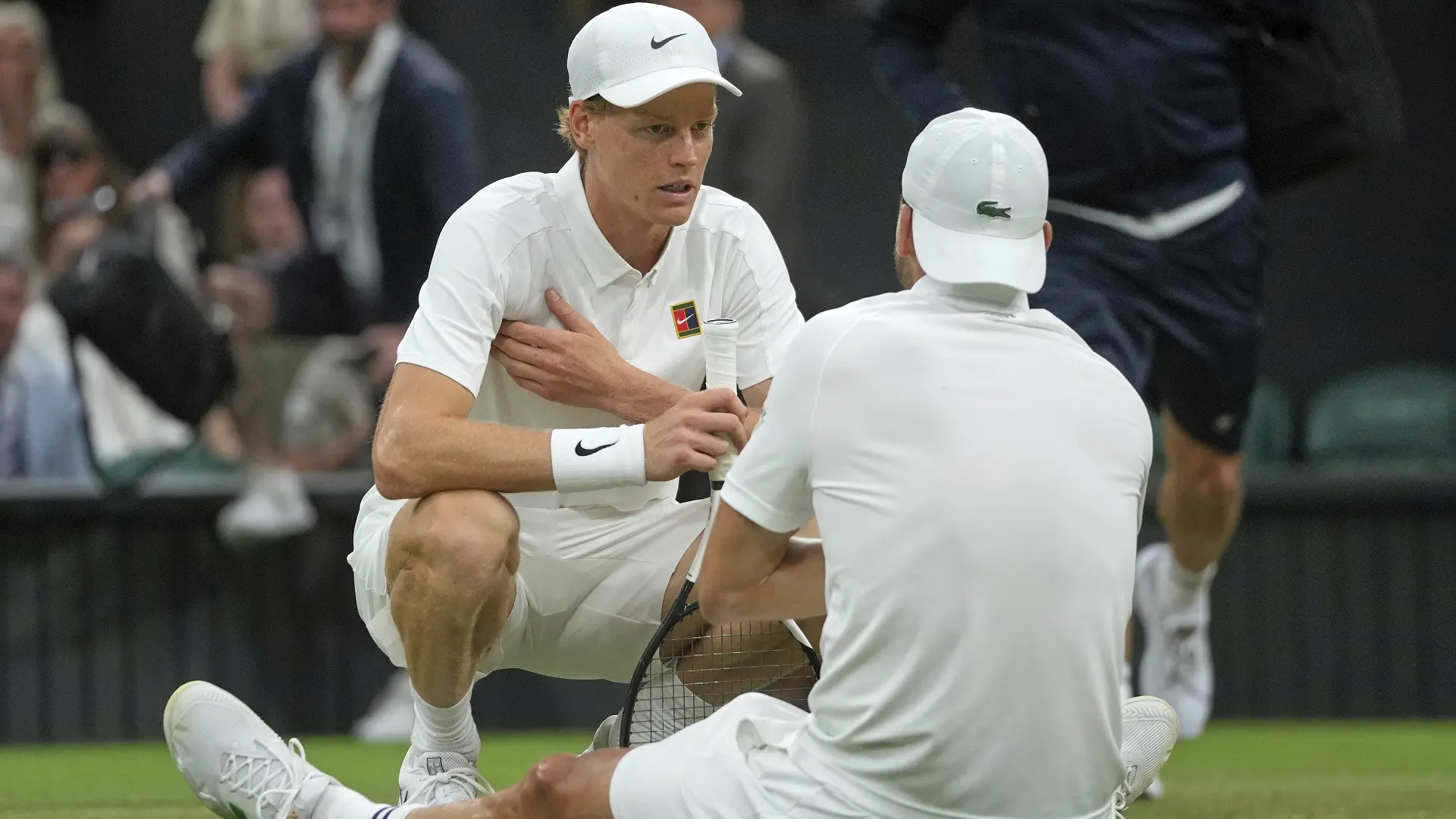 Foto: AP Photo/Kin CheungNajbolji teniser sveta Janik Siner plasirao se u četvrtfinale Vimbldona, pošto mu je večeras Bugarin Grigor Dimitrov predao meč osmine finala zbog povrede. Dimitov, 21. teniser sveta, je do povrede vodio 6:3, 7:5, a u trećem setu je bilo 2:2.