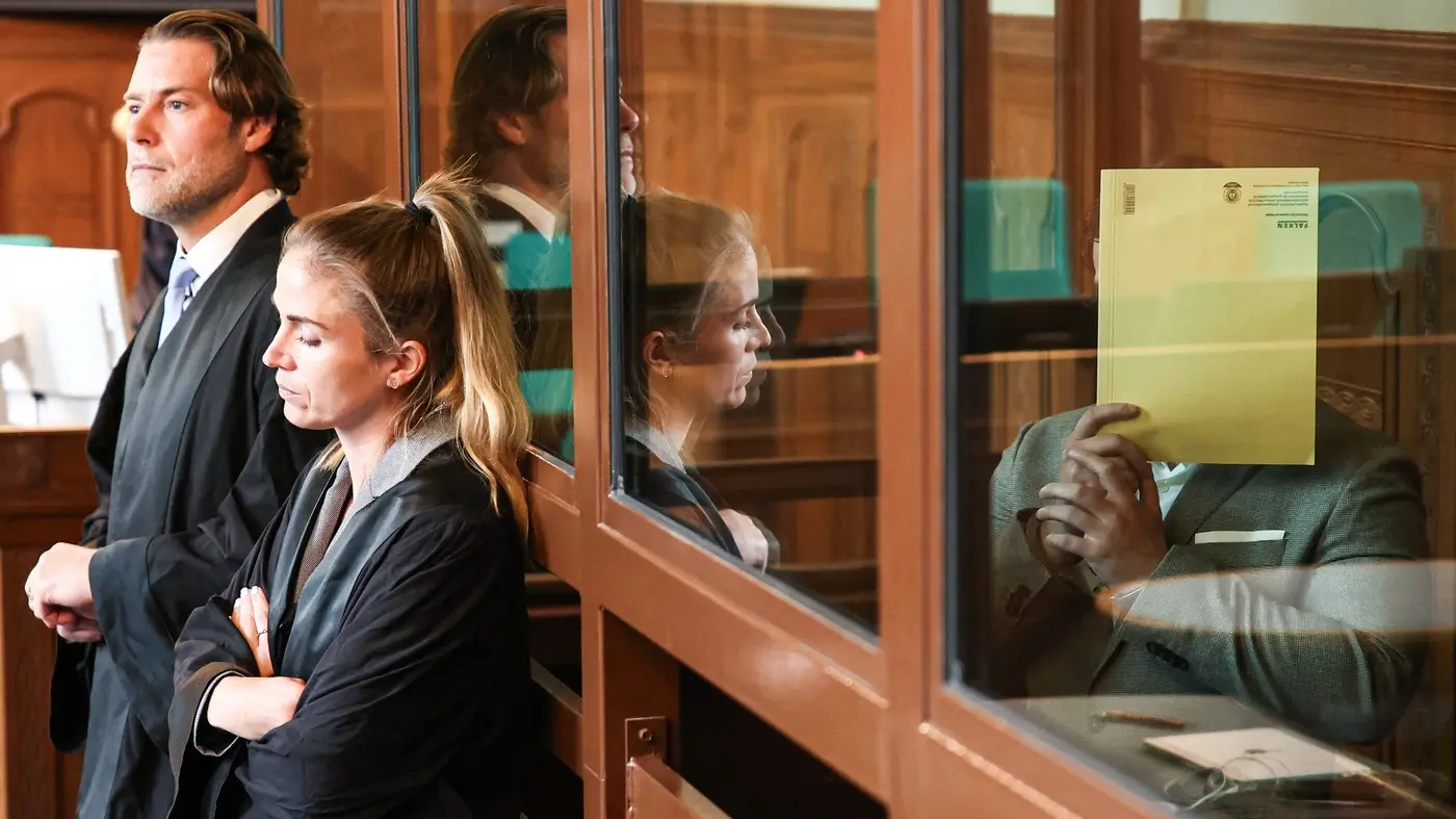 Foto: ProfimediaNikola Vušović, zvani Džoni sa Vračara, kome je 10. juna u Regionalnom sudu u Berlinu počelo suđenje zbog planiranja ubistva, skrivao je lice fasciklom koju je držao u rukama, kako njegov lik ne bi bio fotografisan.