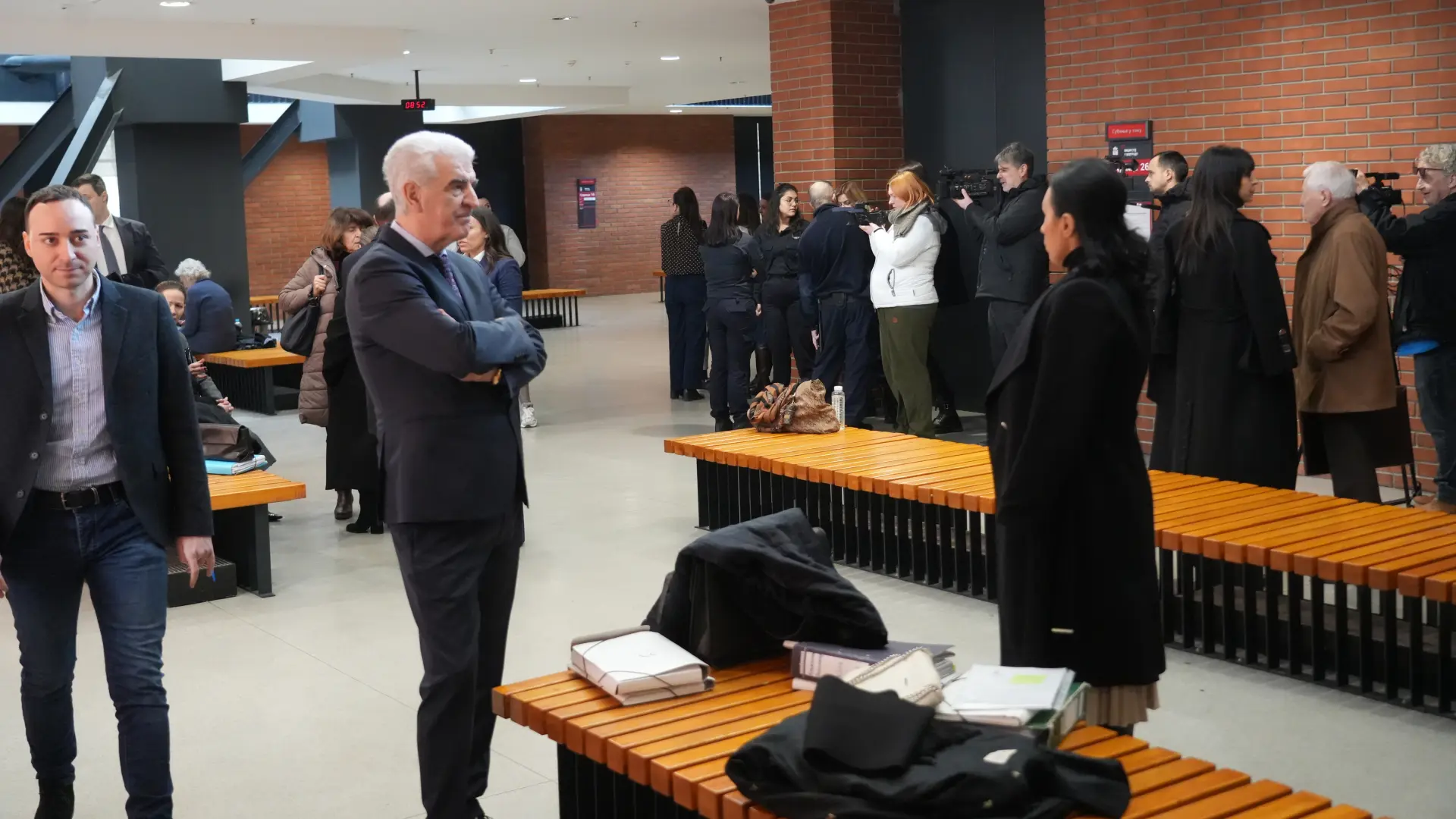 Ona je došla sa slobode u pratnji svojih advokata, dok će njenog supruga sprovesti iz pritvora u kojem se nalazi od hapšenja. U Palatu pravde su došli i oštećeni, odnosno članovi porodice ubijenih i ranjenih, koji bi danas trebalo da svedoče.