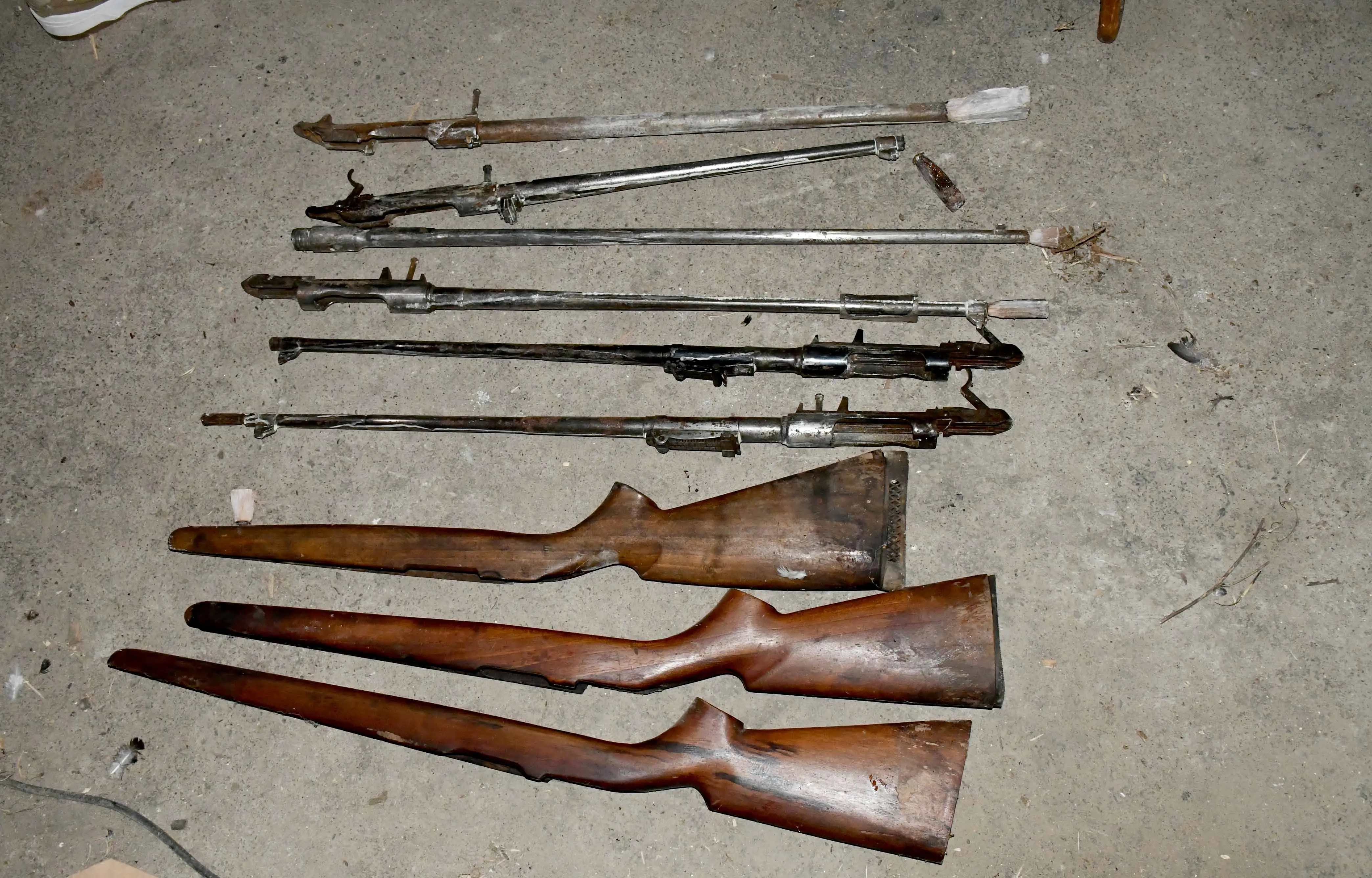 Policija je kod osumnjičenog M. T. (1959) pronašla pištolj sa pripadajućim okvirom, a pretresom stana i drugih prostorija koje koristi pronađen je još jedan pištolj sa dva pripadajuća okvira, lovačka puška, 388 metaka različitog kalibra, 34 lovačka patrona, rukohvat puške sa okidačem i kundakom, sedam cevi za lovačku pušku, kao i tri drvena kundaka za pušku, navodi se u saopštenju policije.