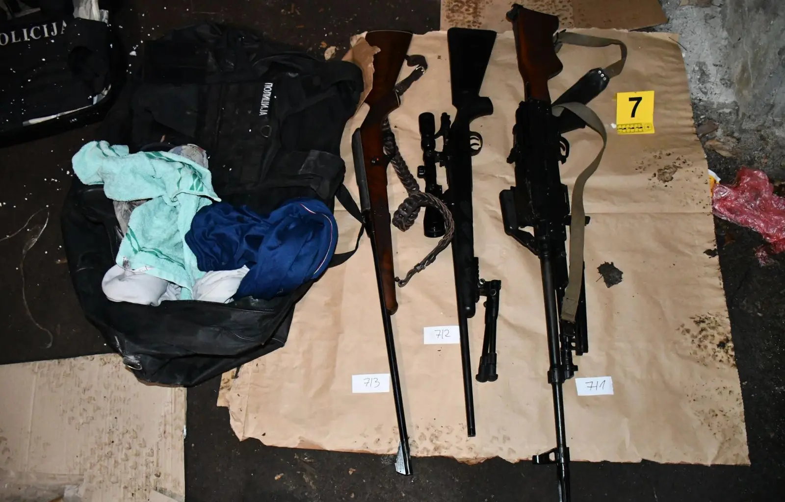 Takođe, u saopštenju se navodi da je osumnjičeni u garaži neovlašćeno držao i nekoliko stotina komada municije različitog kalibra, dva pancirna prsluka sa oznakama "Policija", sredstva za vezivanje, odnosno lisice, više komada opasača i futrola za vatreno oružje, improvizovanu službenu legitimaciju MUP-a Srbije, ručne radio stanice za komunikaciju i više maski za sakrivanje lica.
