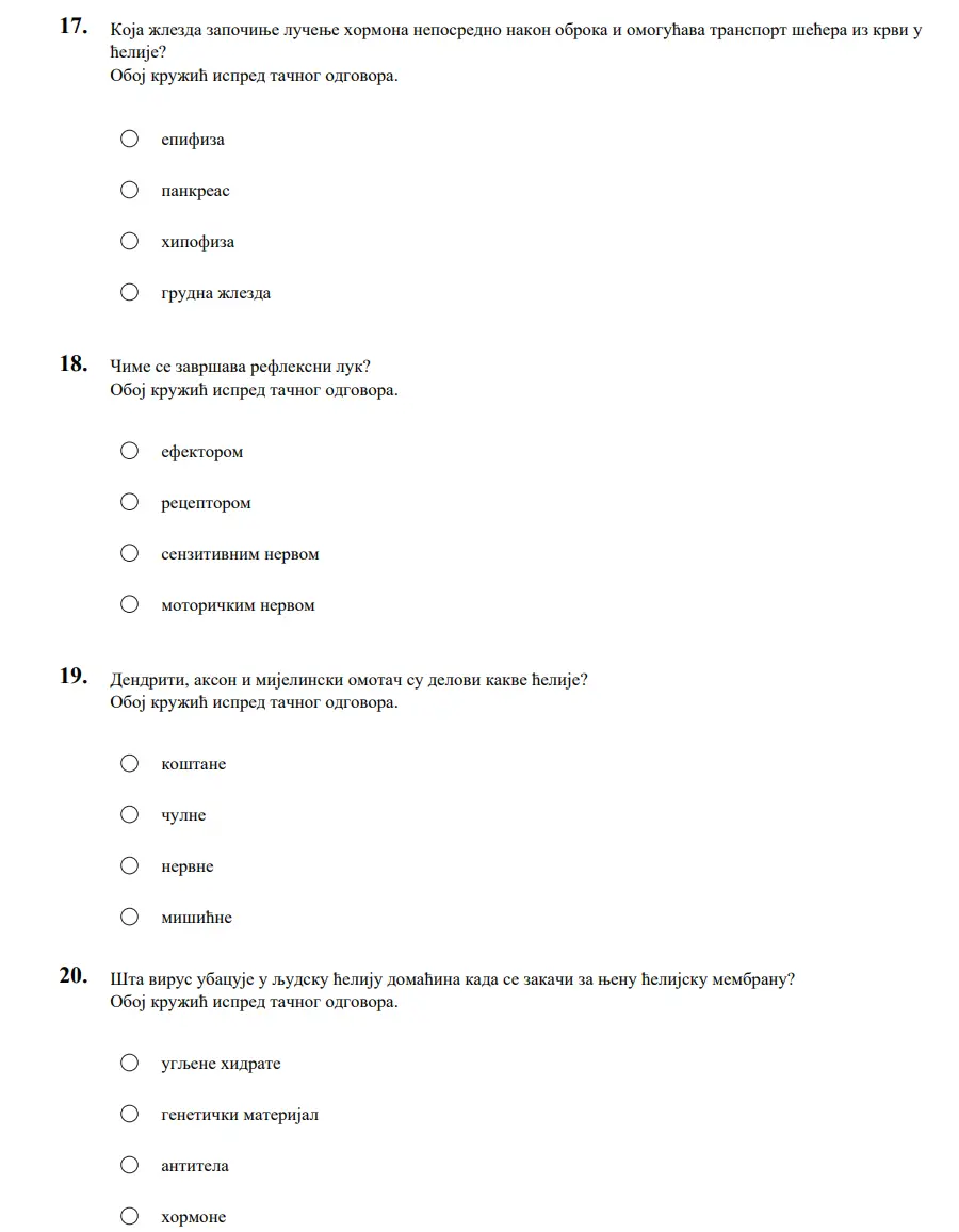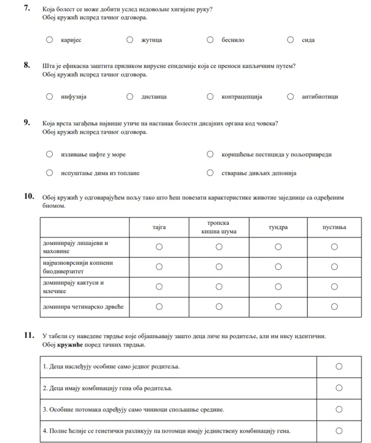 Na testu iz biologije učenici su imali 20 pitanja, a u nastavku teksta pogledajte kako su izgledala rešenja testa.