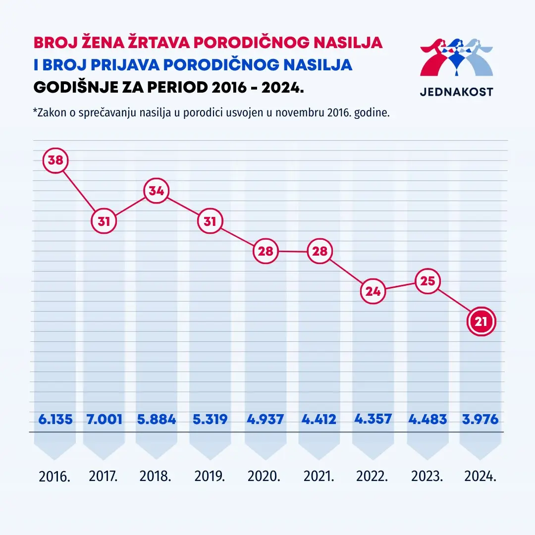 Ona dodaje da je uz ovaj podatak, pre svega kao vid motivacije žrtava i potencijalnih žrtava, važno podsetiti da je od 2016. godine, od kada je usvojen Zakon o sprečavanju nasilja u porodici, broj smrtnih ishoda smanjen za 45 odsto, što jasno pokazuje da sistem funkcioniše onda kada se aktivira.