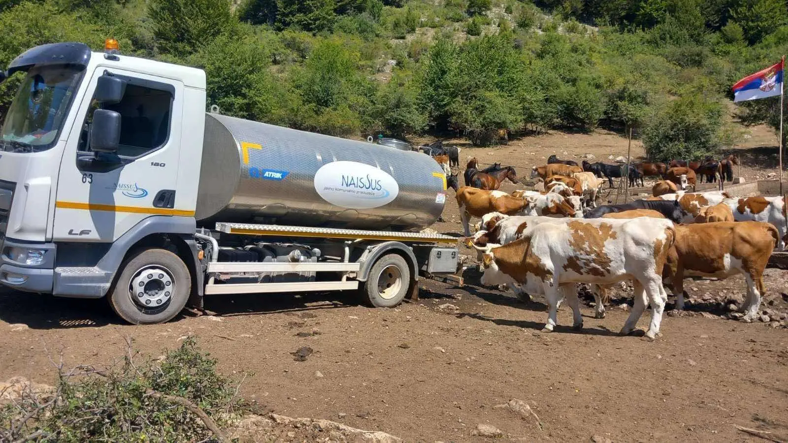 Foto: TANJUG/MPŠVMinistarstvo poljoprivrede, šumarstva i vodoprivrede nastavlja da preduzima hitne mere radi obezbeđivanja pijaće vode na Suvoj planini, gde su, usled presušivanja izvorišta Rakoš, životinje na ispaši ostale bez vode.
