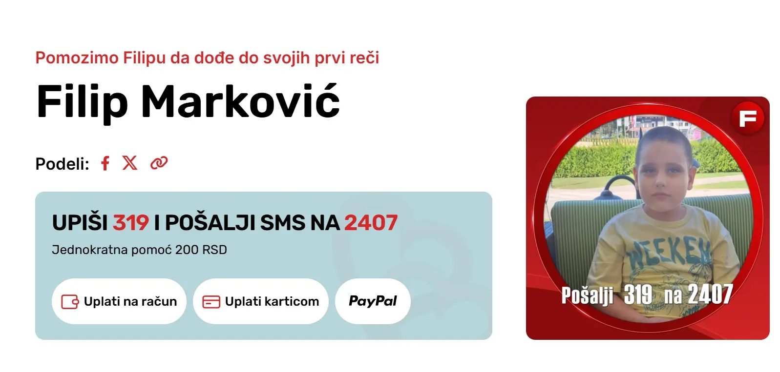 Vaša podrška može napraviti ogromnu razliku u Filipovom životu - može mu omogućiti dalji napredak, lepše sutra i šansu za kvalitetniji život.
