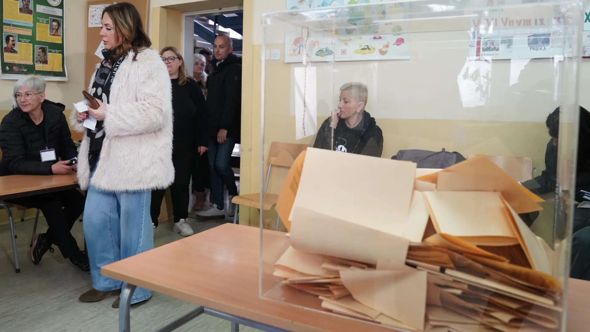 Ubacivanjem kontrolnog listića, otvoreno je i biračko mesto u srednjoj tehničkoj školi “Mihajlo Pupin”, a prvi građani su iskoristili svoje građansko pravo.