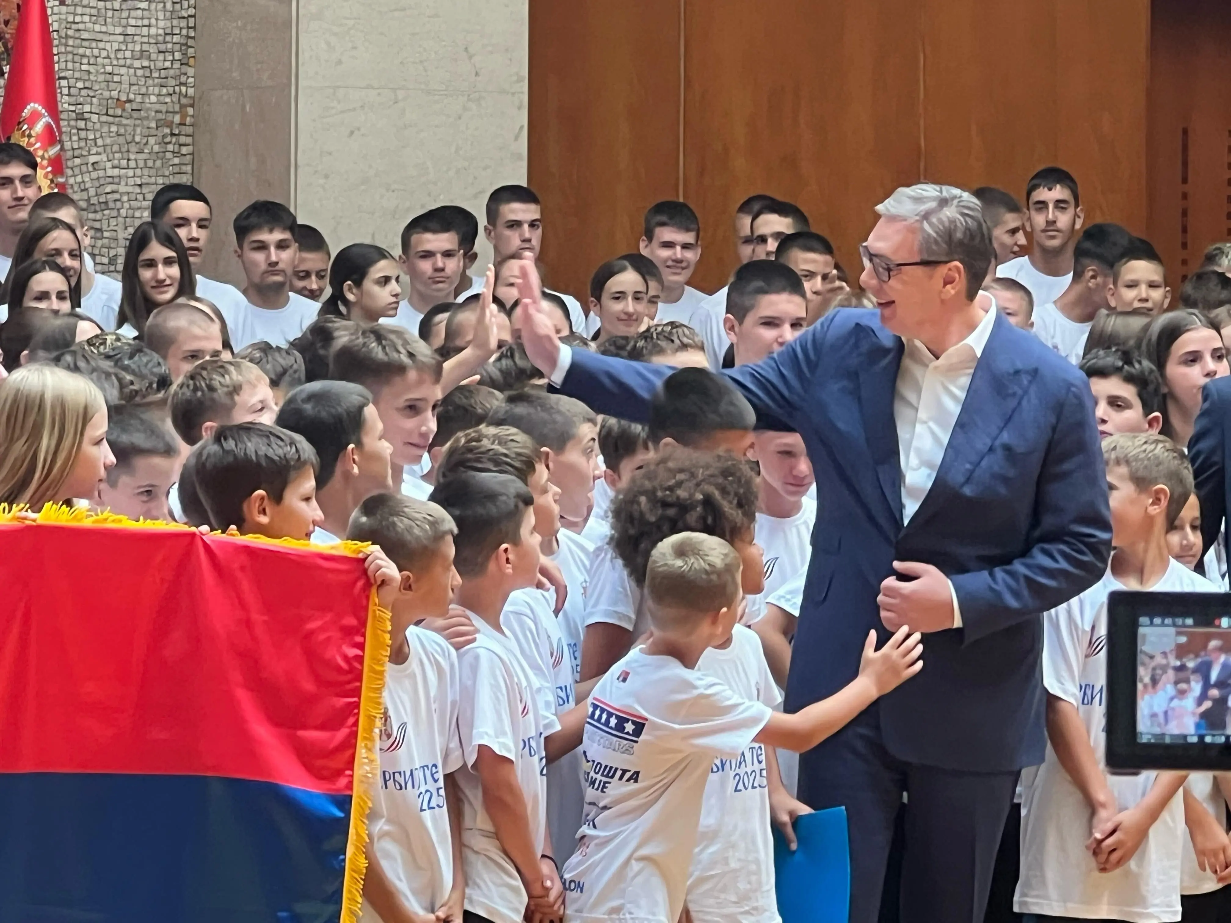 Predsednik Srbije Aleksandar Vučić primio je danas mlade srpske sportiste iz 18 zemalja, učesnike kampa "Srbija te zove 2025".
