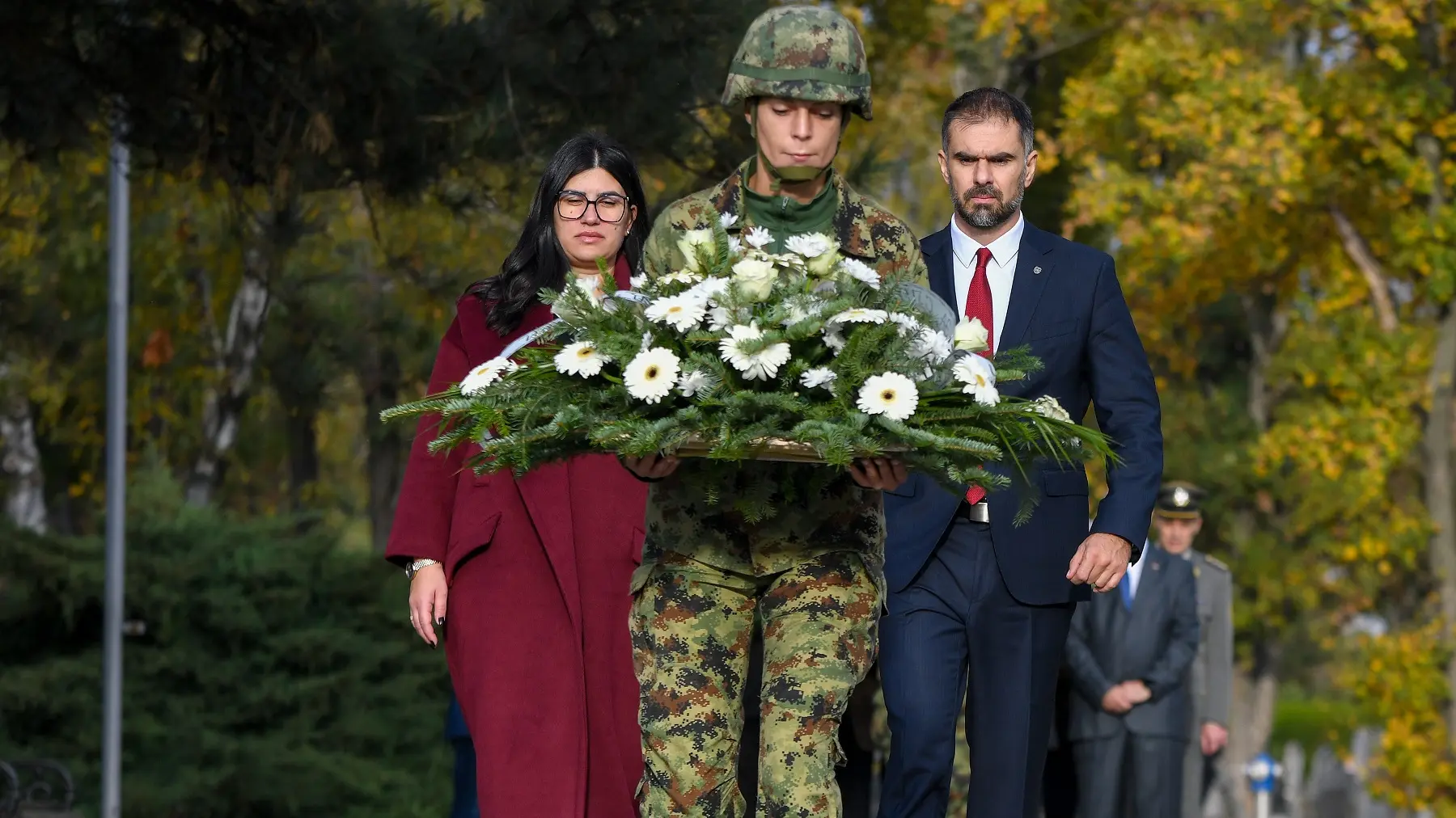Foto: TANJUG/NENAD MIHAJLOVIĆGradonačelnik Novog Sada Žarko Mićin i predsednica Skupštine Grada Dina Vučinić položili su danas vence na Spomen-groblju boraca narodno-oslobodilačkog rata 1941-1945. godine, povodom Dana oslobođenja Novog Sada u Drugom svetskom ratu.