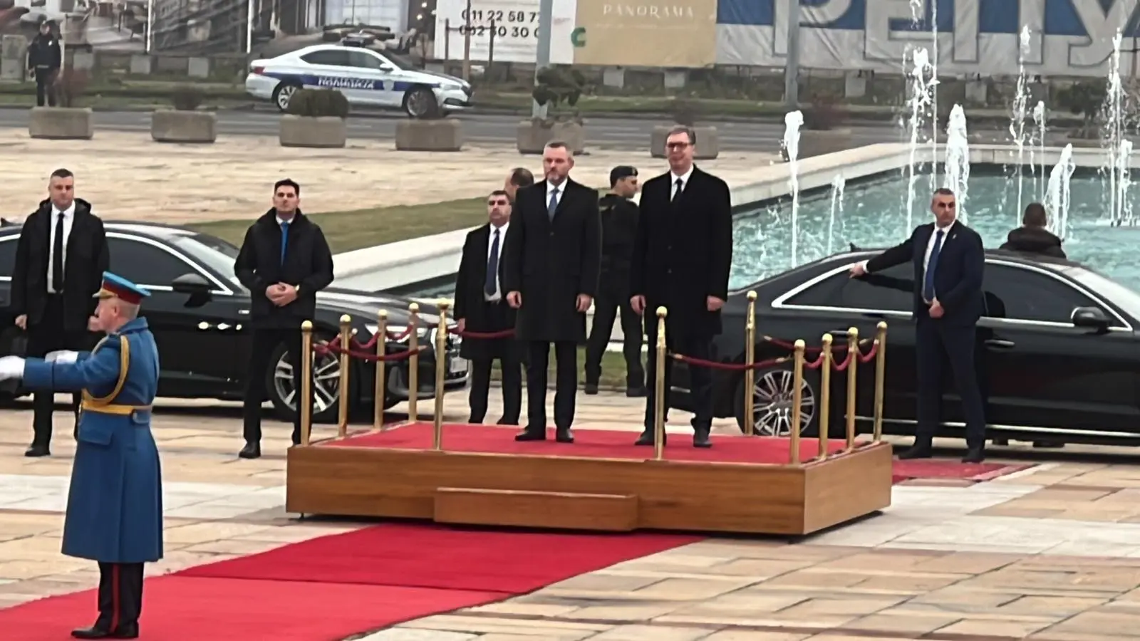 Posle svečanog dočeka uslediće tet-a-tet sastanak Vučića i Pelegrinija, a u 15.20 časova predviđen je plenarni sastanak članova delegacija Srbije i Slovačke predvođen dvojicom predsednika.