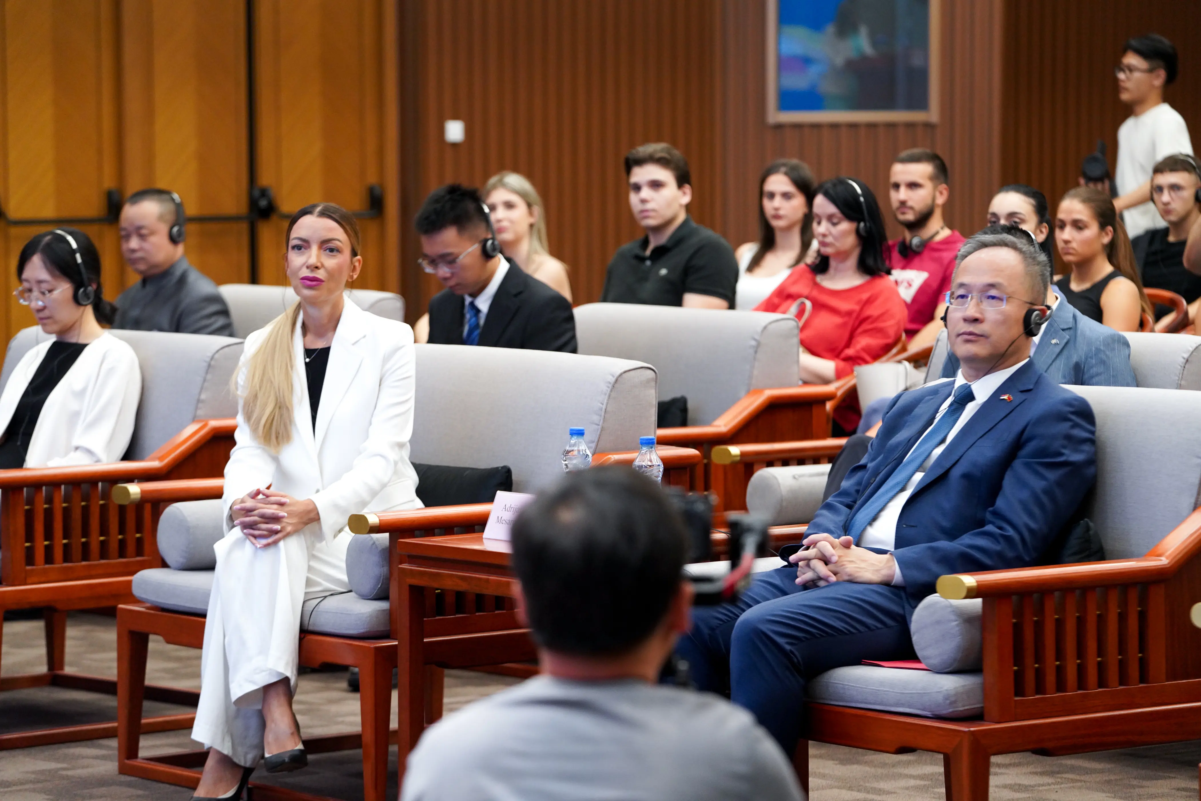 Mesarović je na ceremoniji ispraćaja nakon kratkog razgovora sa ambasadorom Kine u Srbiji Li Mingom, rekla da kao potpredsednica Vlade Srbije i ministarka privrede ima veliko zadovoljstvo i čast što može da isprati studente i da im poželi srećan put.