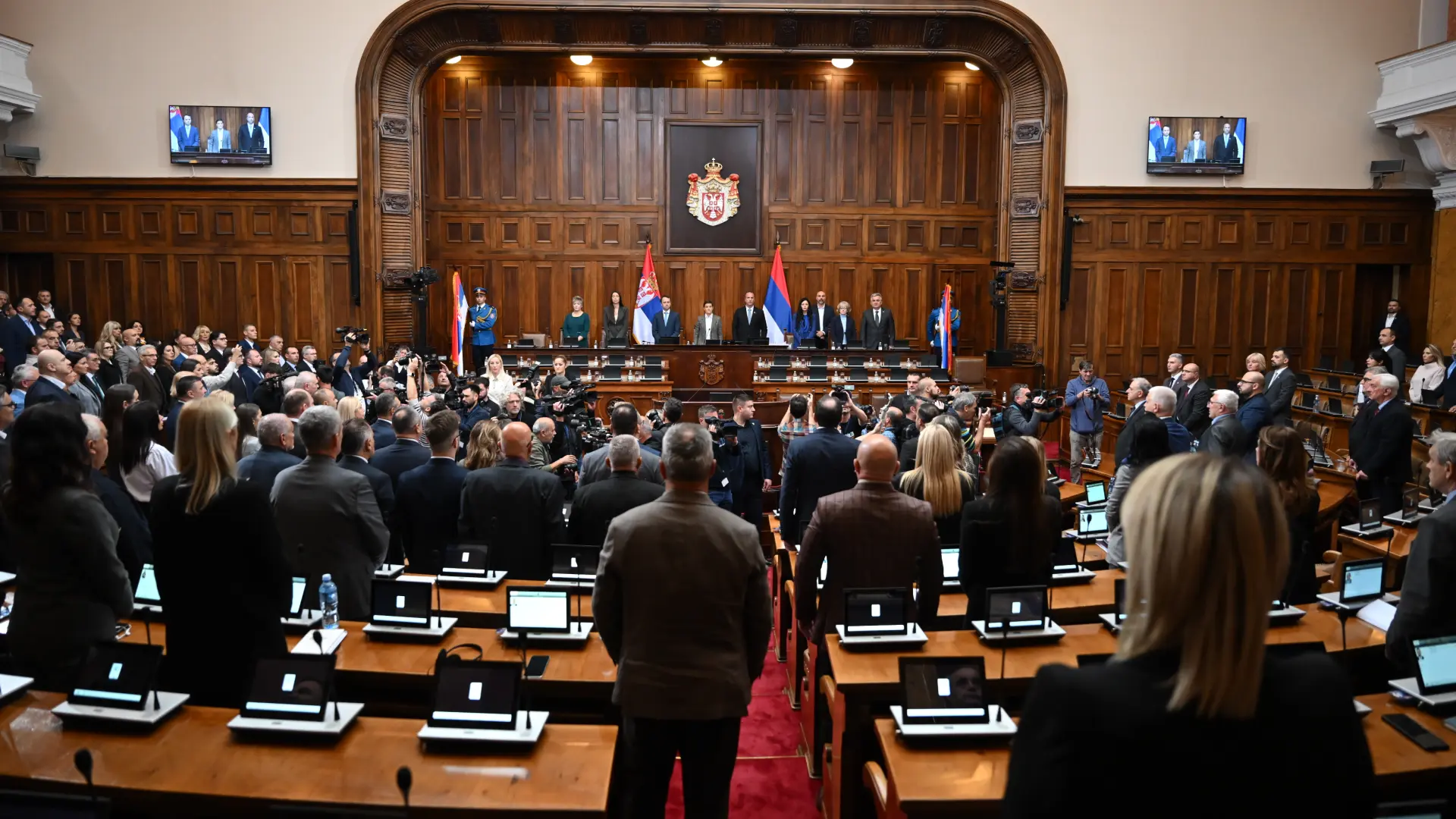 Sednici prisustvuju skoro svi ministri u Vladi Srbije, kao i poslaničke grupe izuzev Demokratske stranke i Ekološkog ustanka.