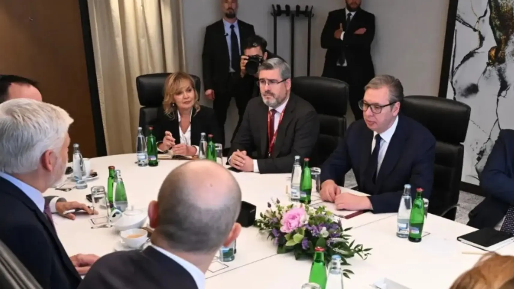 Vučić je kao prvi govornik na panel diskusiji "Iskoristiti trenutak: Stvaranje trajnih partnerstava u susedstvu (Seizing the Moment: Forging Lasting Partnerships in the Neighbourhood)" bio upitan šta zadržava Srbiju na tom putu, u ovom trenutku.