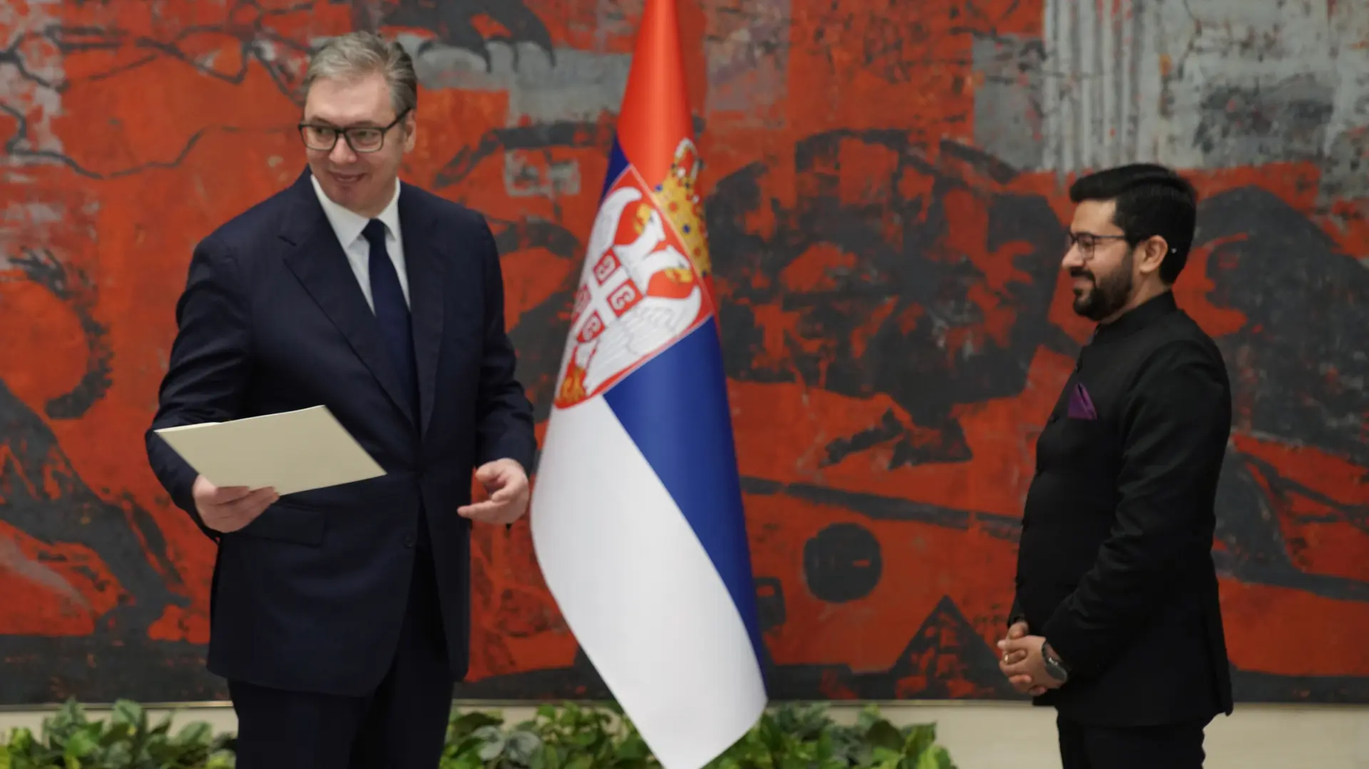 Tokom razgovora sa ambasadorom Indije Abišekom Šuklom, Vučić je istakao važnost tradicionalno prijateljskih odnosa, utemeljenih još u vreme Pokreta nesvrstanih, kao i zainteresovanost Srbije za saradnju u oblasti veštačke inteligencije i digitalnih tehnologija. Naglasio je da Srbija vidi Indiju kao strateškog partnera u povezivanju inovacionih ekosistema, istraživačkih centara i univerziteta.