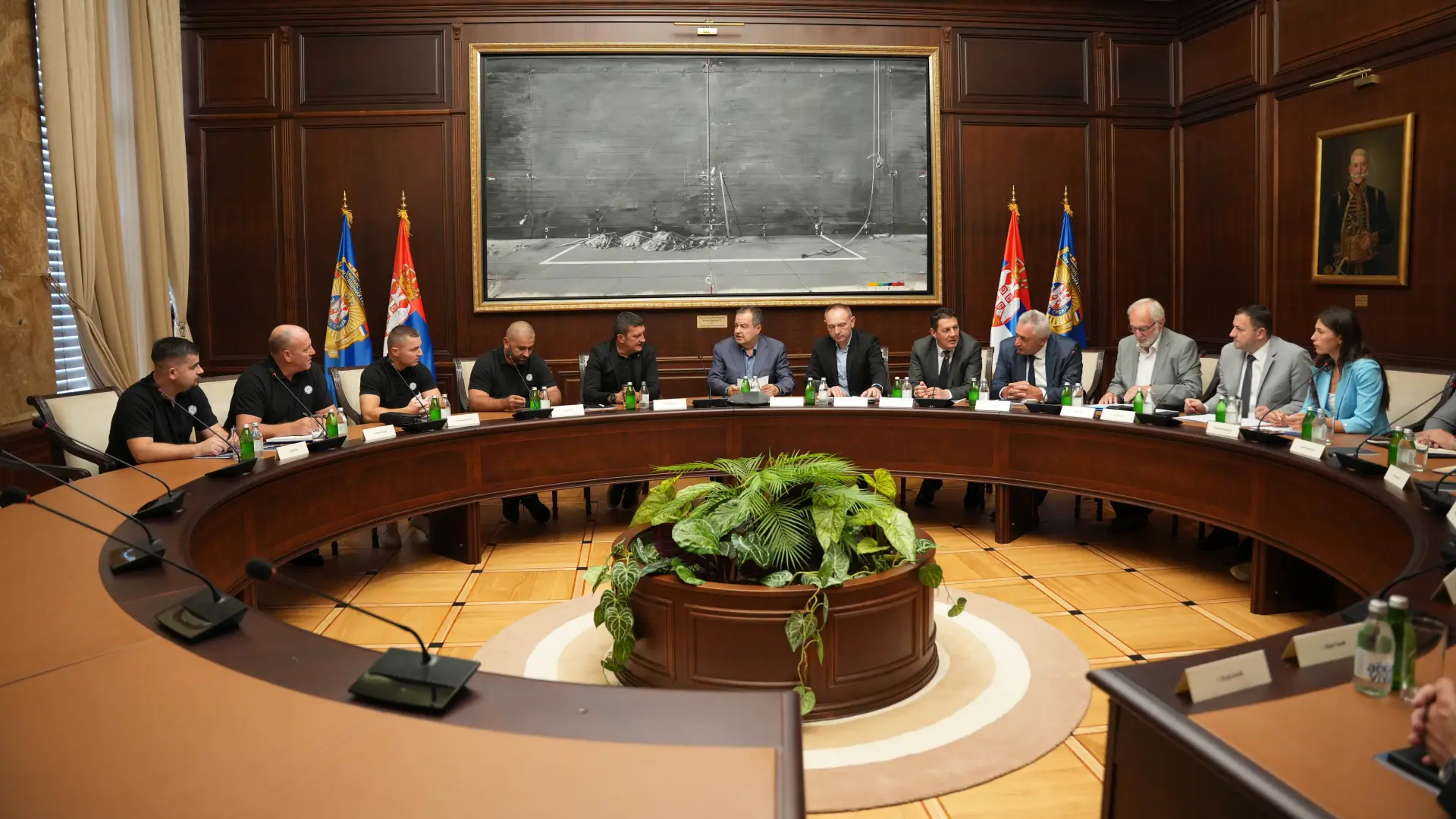 Foto: TANJUG/OMK MUP REPUBLIKE SRBIJEPotpredsednik Vlade Srbije i ministar unutrašnjih poslova Ivica Dačić i direktor policije Dragan Vasiljević razgovarali su danas u Palati Srbija sa predstavnicima Sindikata srpske policije, Nezavisnog policijskog sindikata i Policijskog sindikata Srbije o daljem unapređenju položaja i uslova rada pripadnika Ministarstva unutrašnjih poslova.