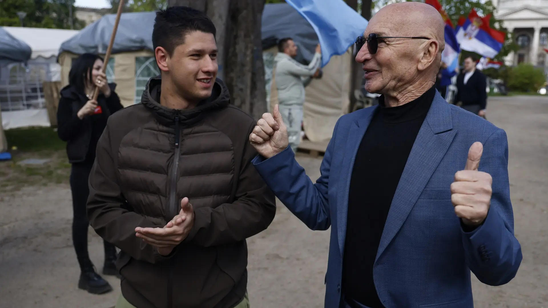 Foto: TANJUG/MARKO ĐOKOVIĆDragutin Dimčevski penzionisani potpukovnik Vojske Jugoslavije i ratni komandant karaule Košare, u to vreme zamenik komandanta 53. graničnog bataljona tokom bitke na Košarama, došao je u u Pionirski park u Beogradu, da podrži studente koji traže da se nastavi nastava na fakultetima.