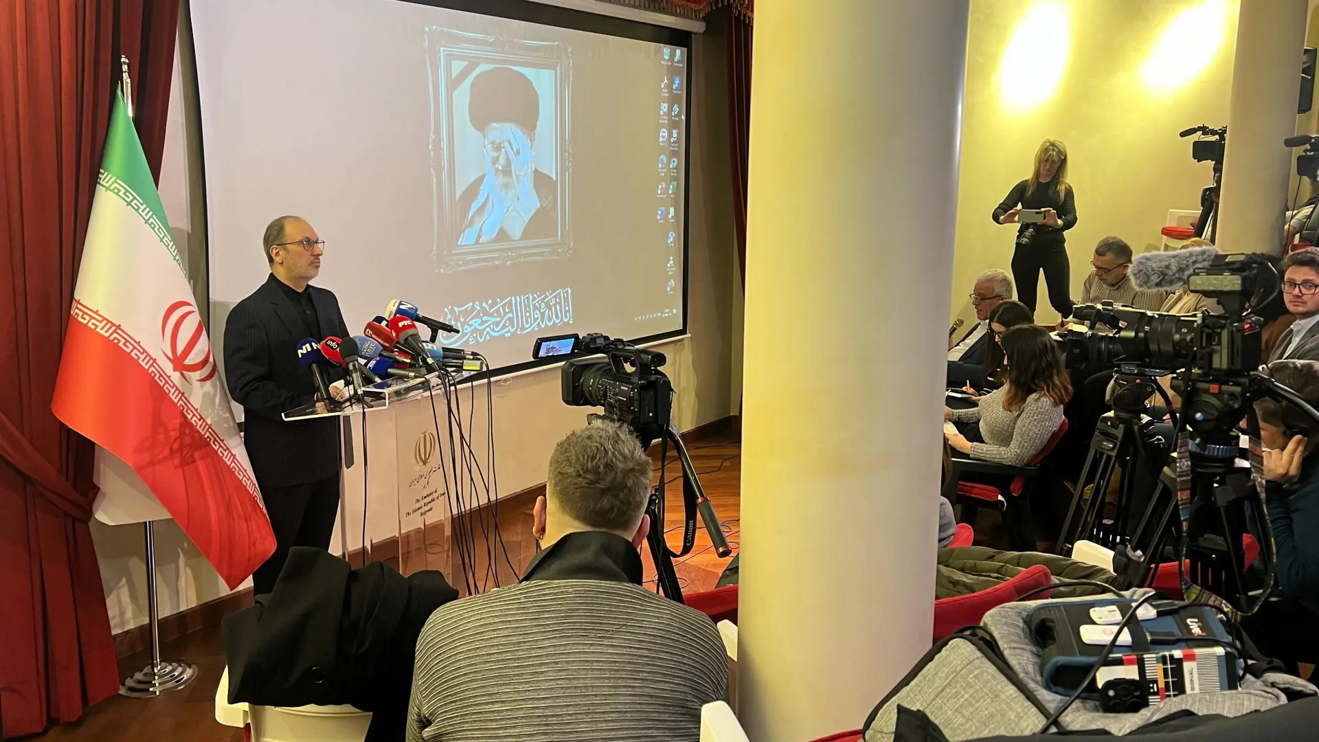 Foto: Una TVAmbasador Irana u Srbiji Mohamad Sadek Fazli izjavio je danas da je iranski vrhovni vođa ajatolah Ali Hamnei mučki ubijen u svom domu, što, kako je rekao, predstavlja čin ciljanog terora na lidera jedne zemlje članice UN.