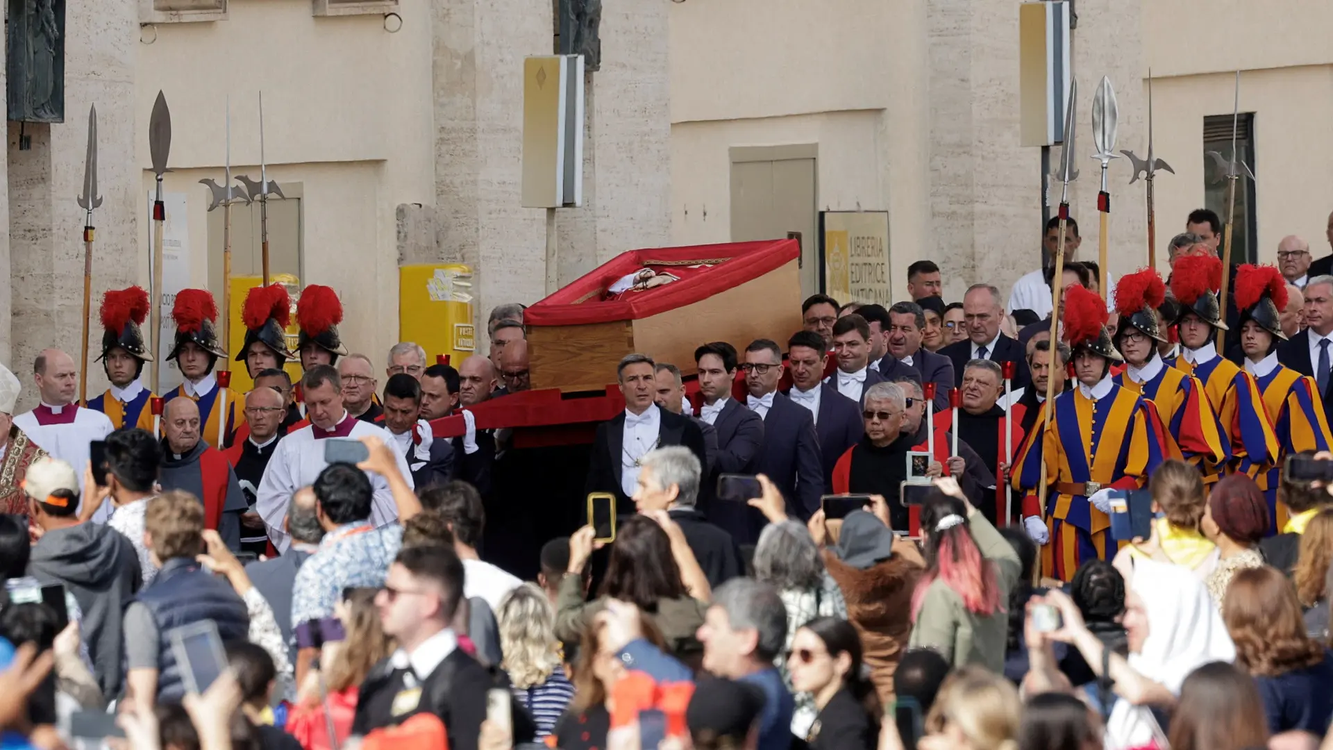 Posle toga, kovčeg sa telom pape prenet je kroz Pijaca Santa Marta i Pijaca dei Protomartiri prema bazilici, uz zvuke zvona koja su se oglasila u njegovu čast.
