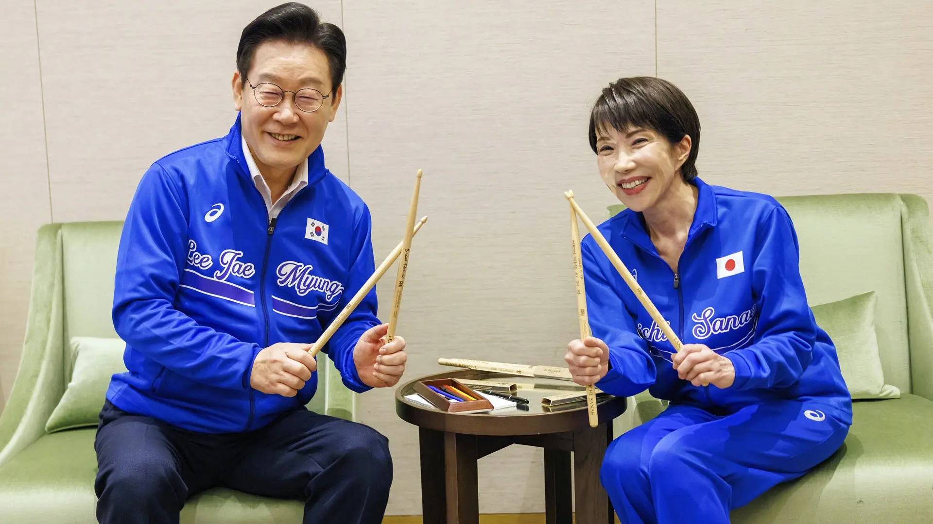 Foto: Tanjug/Prime Minister's Office of Japan via APTokom nedavne posete Japanu, južnokorejski predsednik Li Džae Mjung poklonio je japanskoj premijerki Sanae Takaiči bubnjeve proizvedene u Južnoj Koreji, saopštio je Kabinet predsednika.