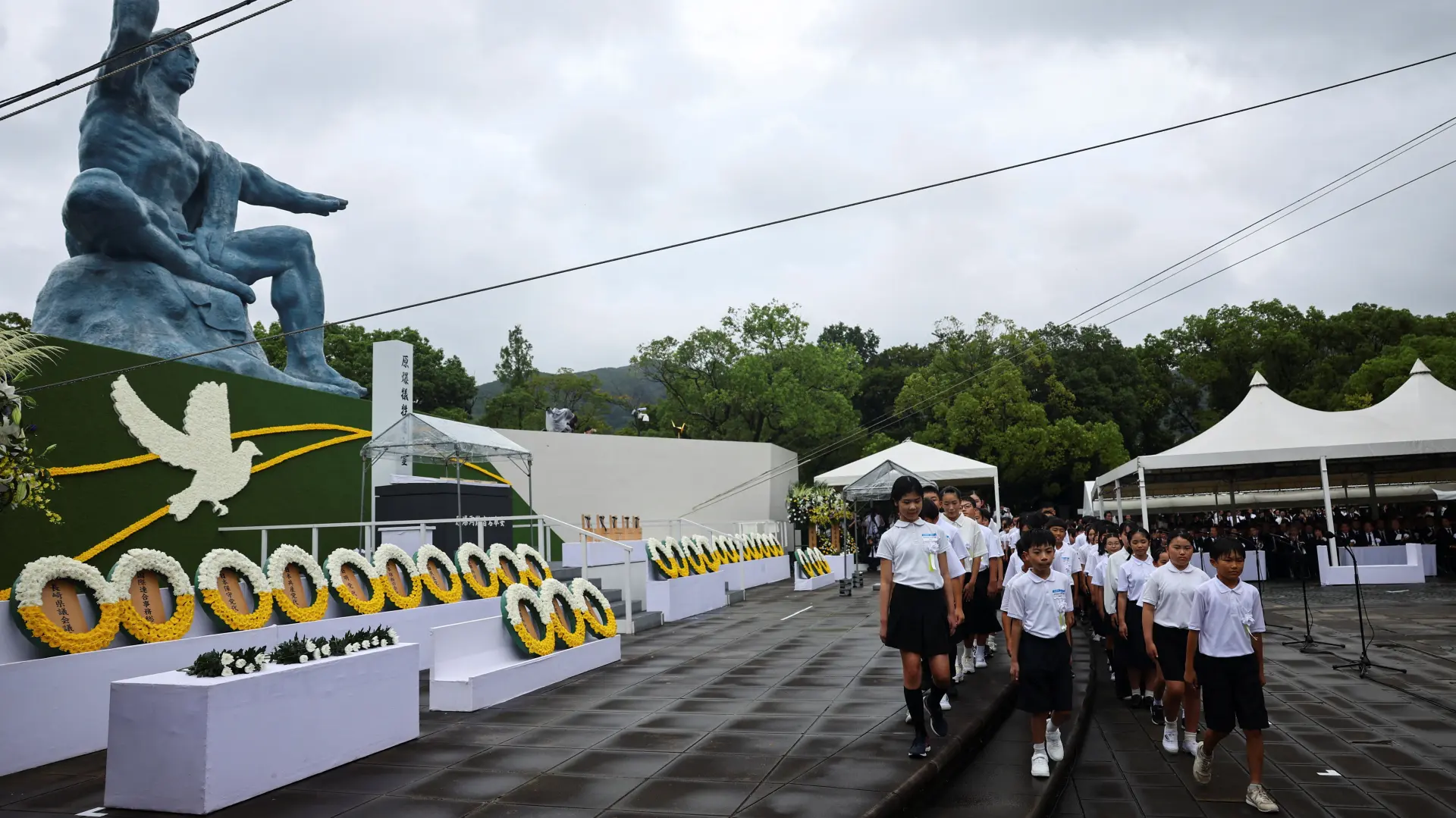 Oko 2.600 učesnika, uključujući delegacije iz više od 90 zemalja, okupilo se u Parku mira u Nagasakiju, preneo je AP.