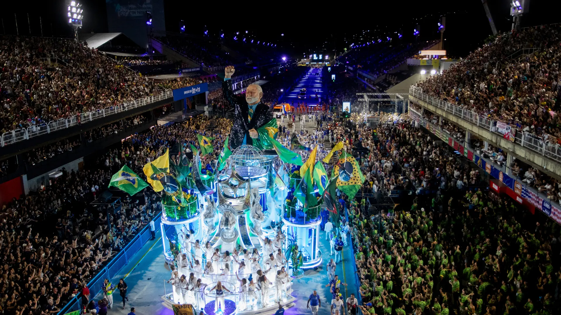 Foto: Tanjug/AP Photo/Bruna Prado"Sambadrom" u Rio de Žaneiru bio je domaćin raskošne karnevalske parade posvećene predsedniku Brazila Luizu Inasiju Luli da Silvi, koji ove godine ulazi u trku za četvrti mandat, dok njegovi politički protivnici najavljuju pravne korake tvrdeći da je time kampanja započeta šest meseci pre roka.