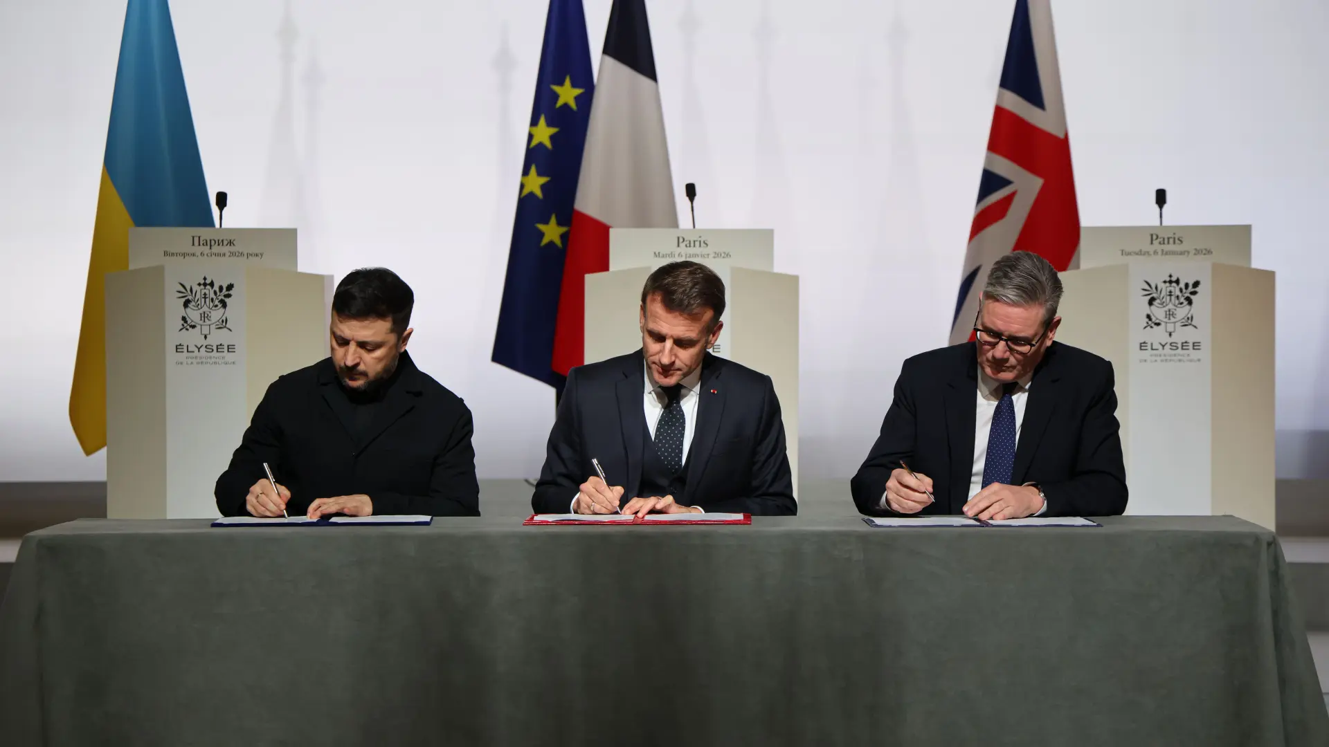 Nakon sastanka Koalicije voljnih u Parizu, predsednik Ukrajine Volodimir Zelenski, predsednik Francuske Emanuel Makron i premijer Velike Britanije Kir Starmer potpisali su Deklaraciju o namerama između Ukrajine, Francuske i Velike Britanije o raspoređivanju multinacionalnih snaga radi podrške odbrani, obnovi i strateškoj otpornosti Ukrajine.