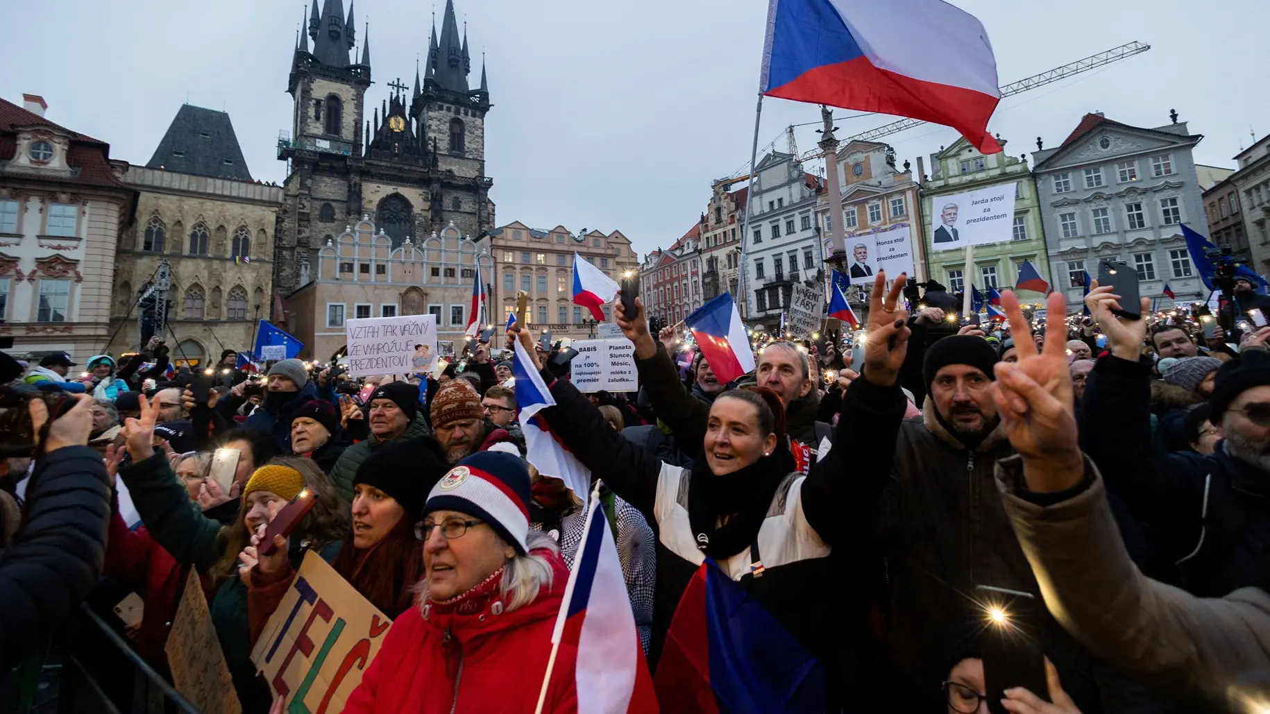 Mnogi demonstranti su mahali zastavama EU i Češke i nosili natpise "Stojimo uz predsednika", a neki su izrazili podršku Ukrajini i protivljenje koalicionoj vladi češkog premijera Andreja Babiša.