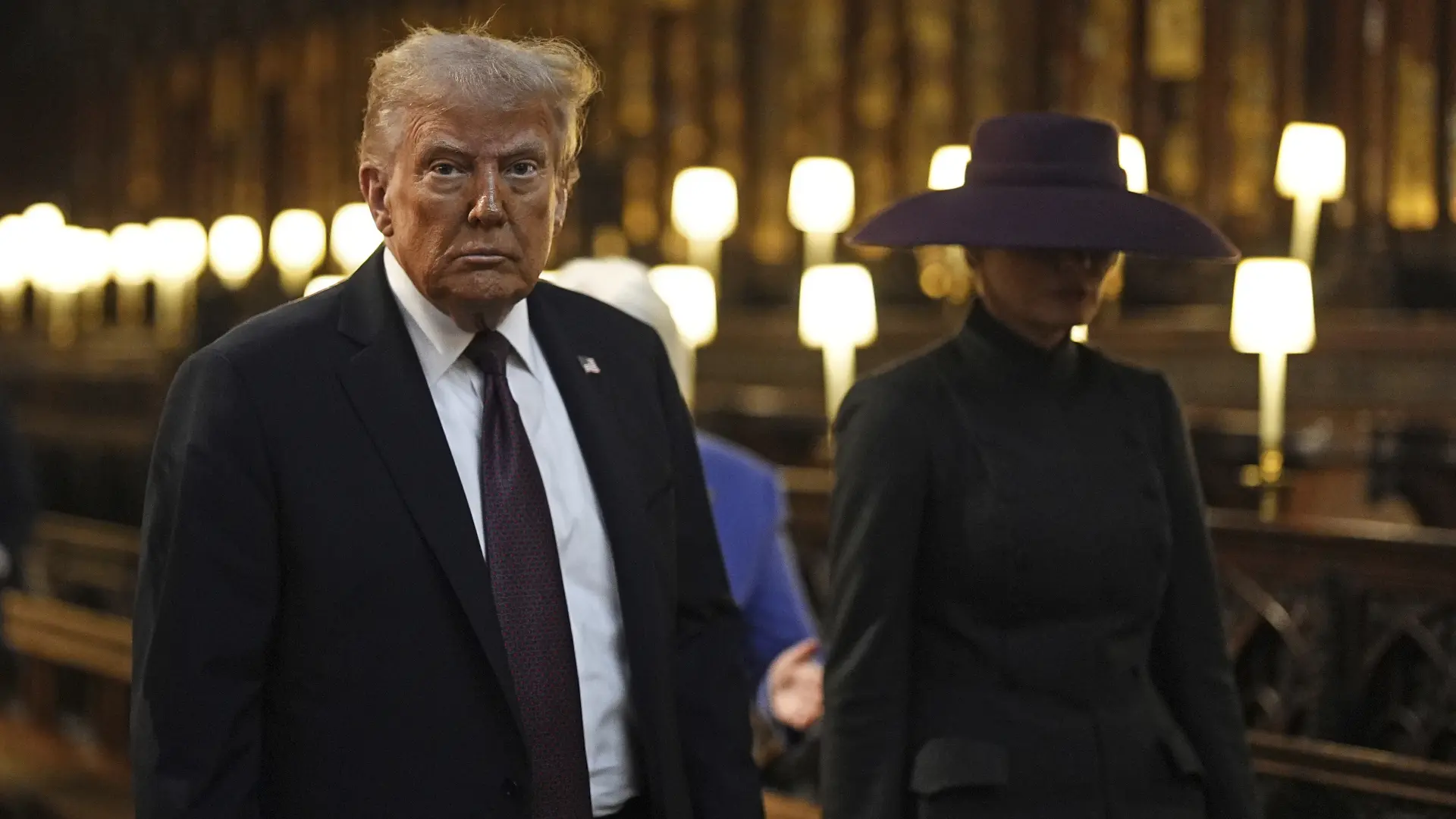 Foto: Aaron Chown/Pool Photo via APAmerički predsednik i prva dama Donald i Melanija Tramp su, pre svečanog ručka koji je u njihovu čast priredio britanski kralj Čarls Treći u zamku Vindzor, položili venac na grob kraljice Elizabete Druge u kapeli Svetog Đorđa u Vindzoru.