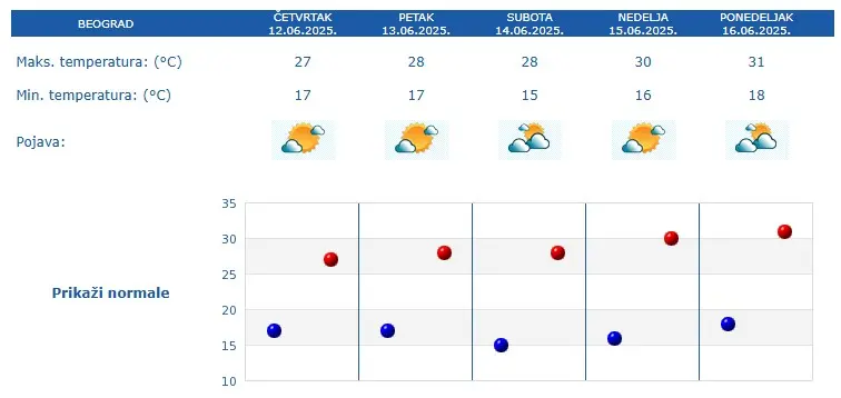 Najviša dnevna temperatura kretaće se do +27 u Beogradu