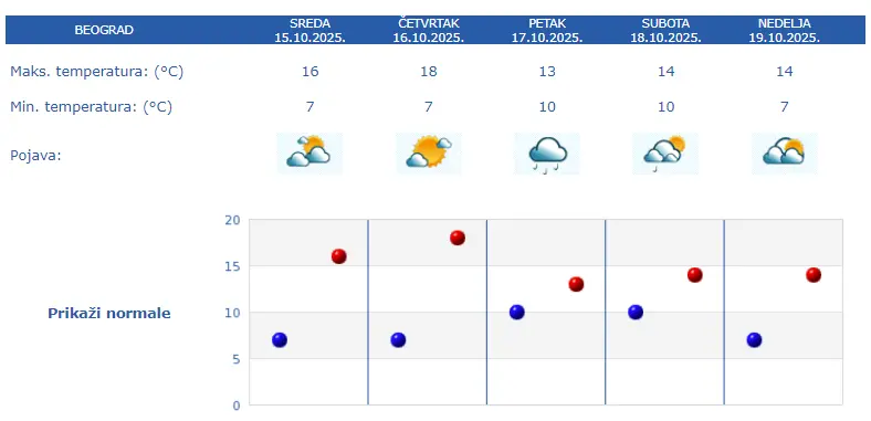 Suvo vreme zadržaće se do petka kada se očekuje naoblačenje sa kišom i lokalnim pljuskovima.