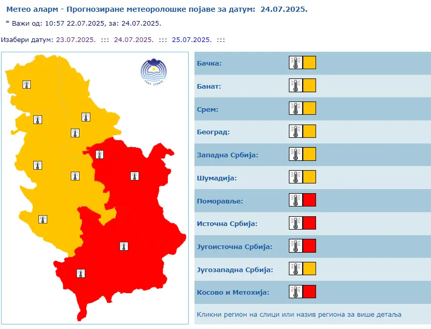 Vreme u Beogradu biće pretežno sunčano i veoma toplo, s vetrom slabim i promenljivim i jutarnjom temperaturom od 19 do 22 stepeni, a najvišom dnevnom oko 36 stepeni.