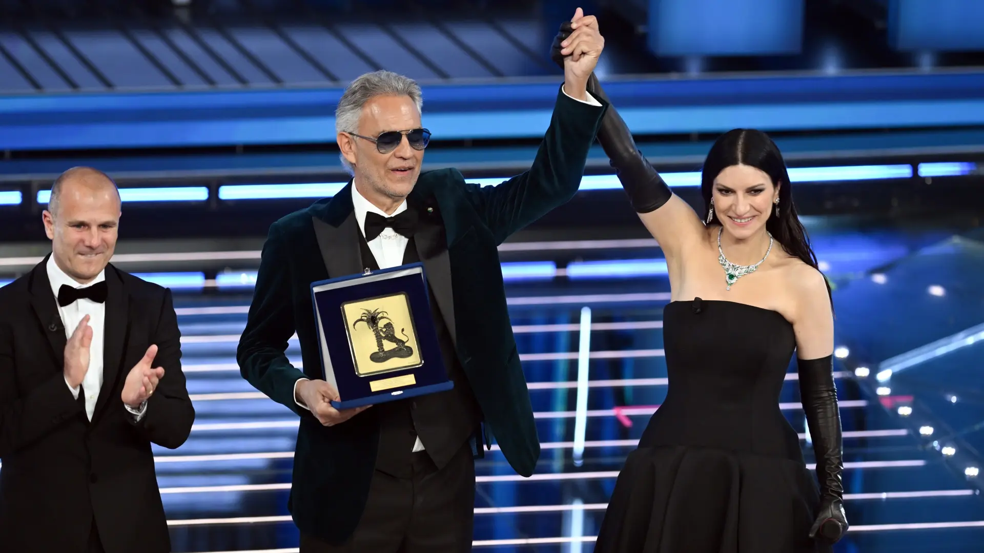 U sklopu večeri Bočeli je na sceni dobio i "Premio Città di Sanremo" (nagrada grada Sanrema) kao priznanje za doprinos širenju italijanske muzike u svetu. S njim je došla i supruga Veronika Berti (42), s kojom je u braku od 2014. godine.