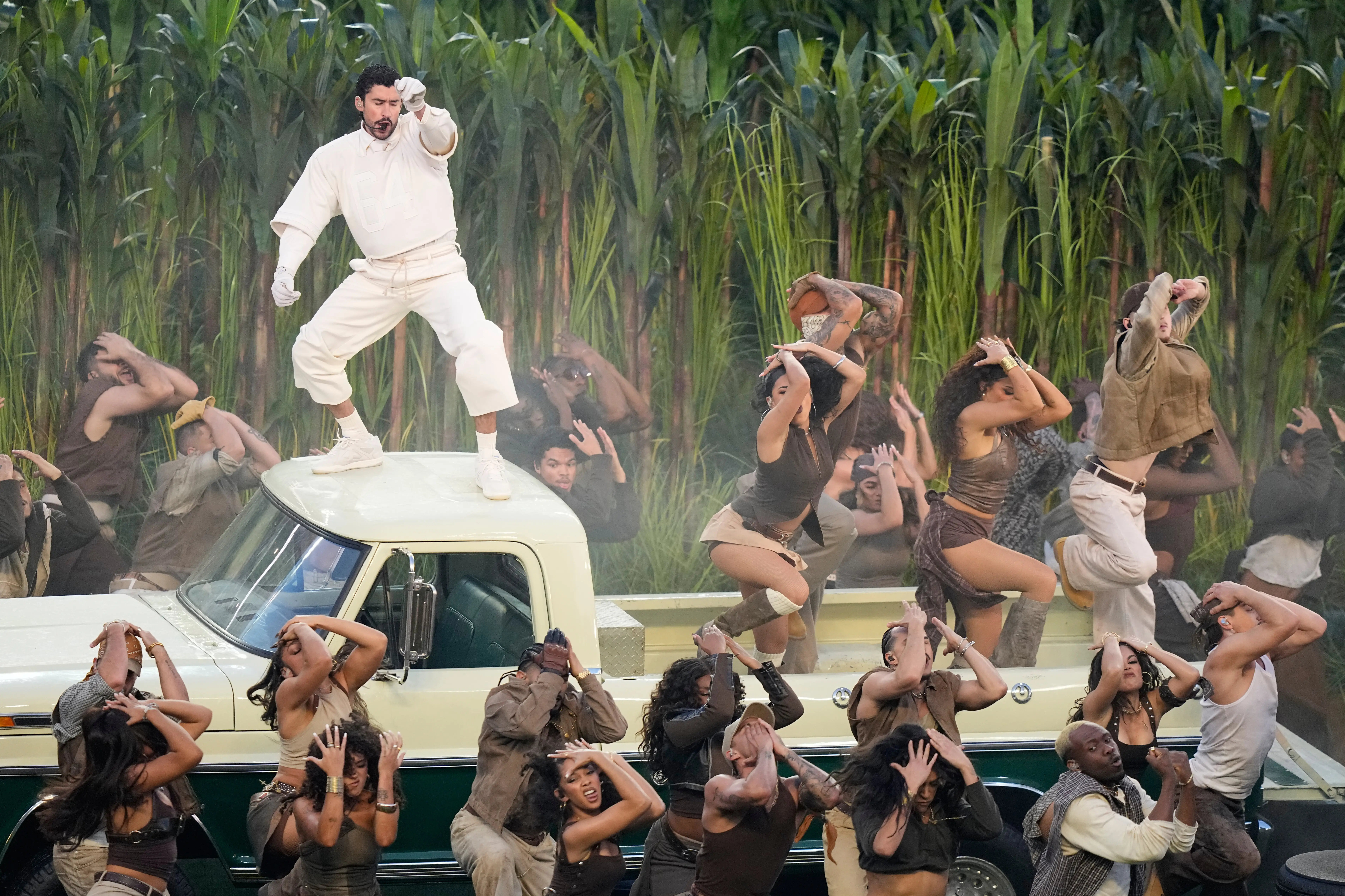 Bed Bani je deo seta izveo na ružičasto-žutom tremu onoga što je nazvao "La Kasita”, replike skromne kuće povezane sa portorikanskom arhitekturom. Odao je priznanje i svojoj istorijskoj pobedi, ostvarene tek prošle nedelje, kada je osvojio Gremi za album godine, predavši nagradu kao inspiraciju mladom latino dečaku.