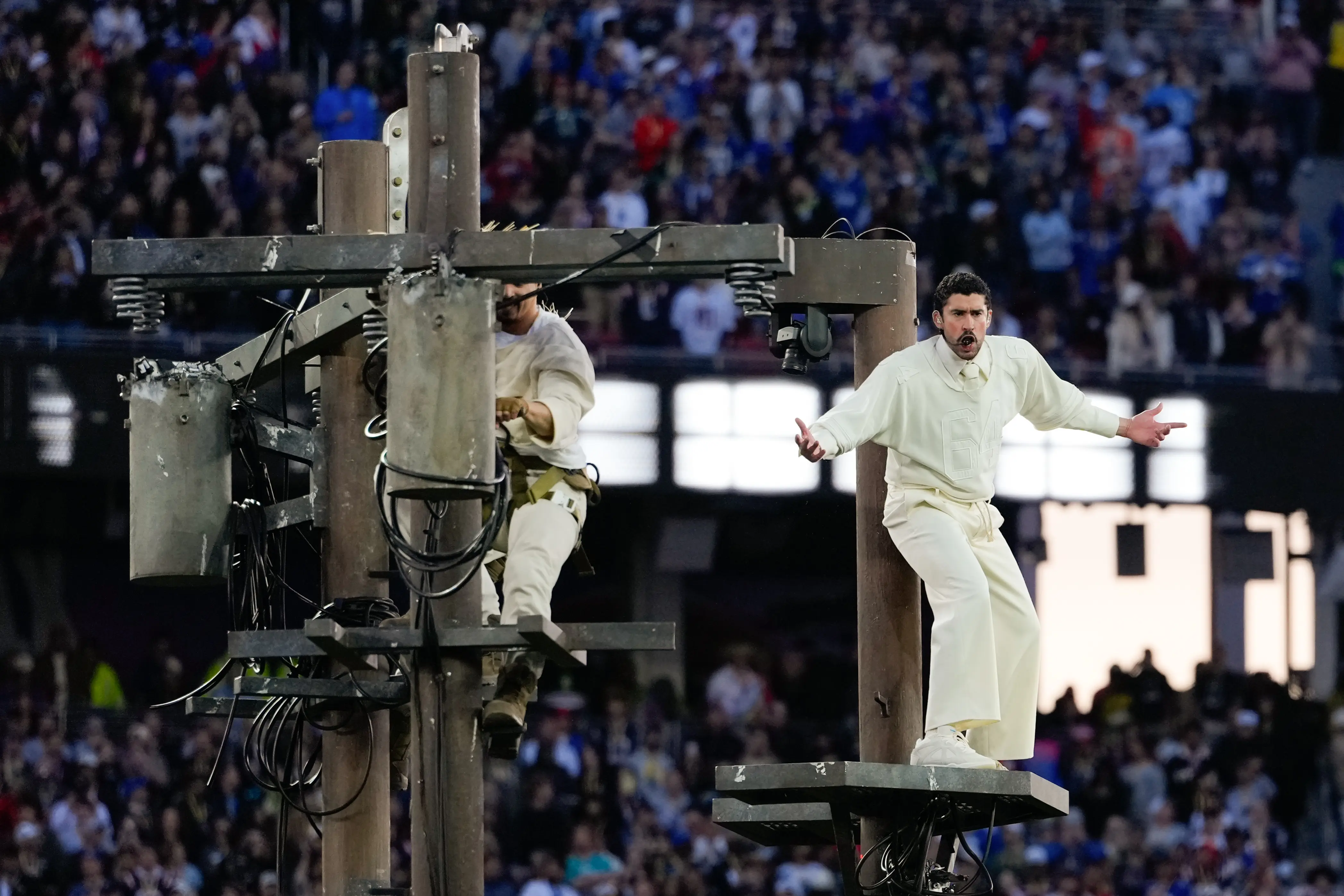 Foto: Santiago Mejia/San Francisco Chronicle via AP/TanjugOvogodišnji nastup Bed Banija na Superboulu obuhvatio je polje šećerne trske, venčanje koje je delovalo kao da se odvija na samoj sceni i uličnu scenu u njujorškom stilu, uz pojavljivanja Lejdi Gage i Rikija Martina.