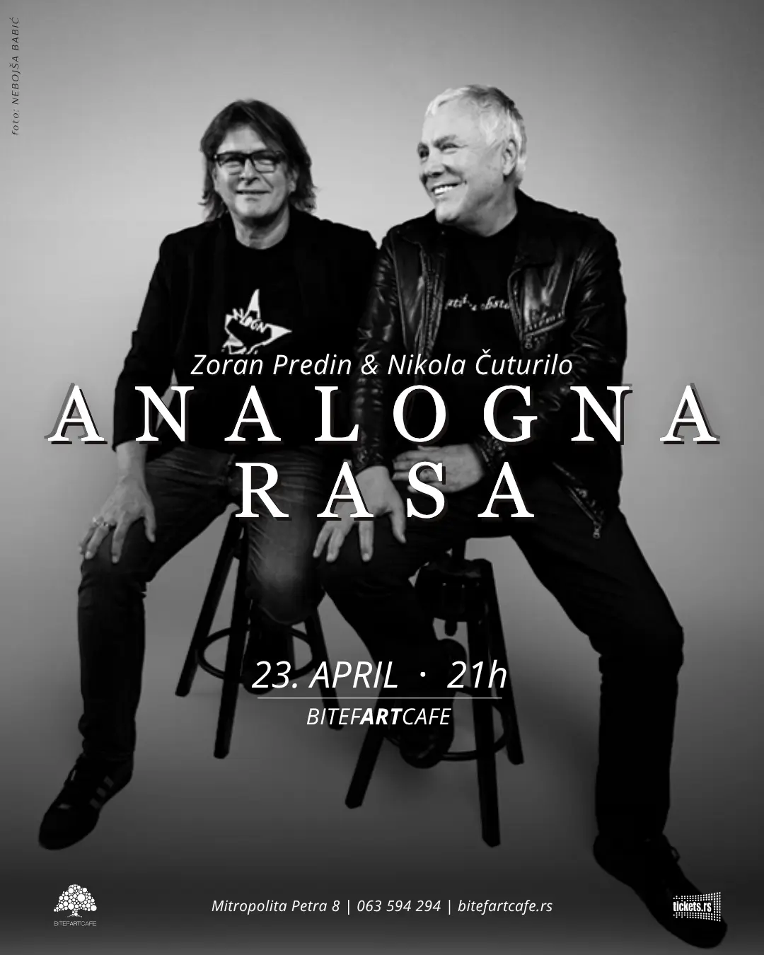 Foto: PromoNa scenu BitefArtCafe kluba, 23. aprila stižu dva autorska sveta koja su decenijama oblikovali regionalnu kantautorsku i rock scenu. Projekat “Analogna Rasa”, koji su pokrenuli Zoran Predin i Nikola Čuturilo, donosi veče muzike nastale iz prijateljstva, iskustva i potrebe da se u vremenu brzih trendova sačuva ono trajno, pesma, reč i autorski potpis.