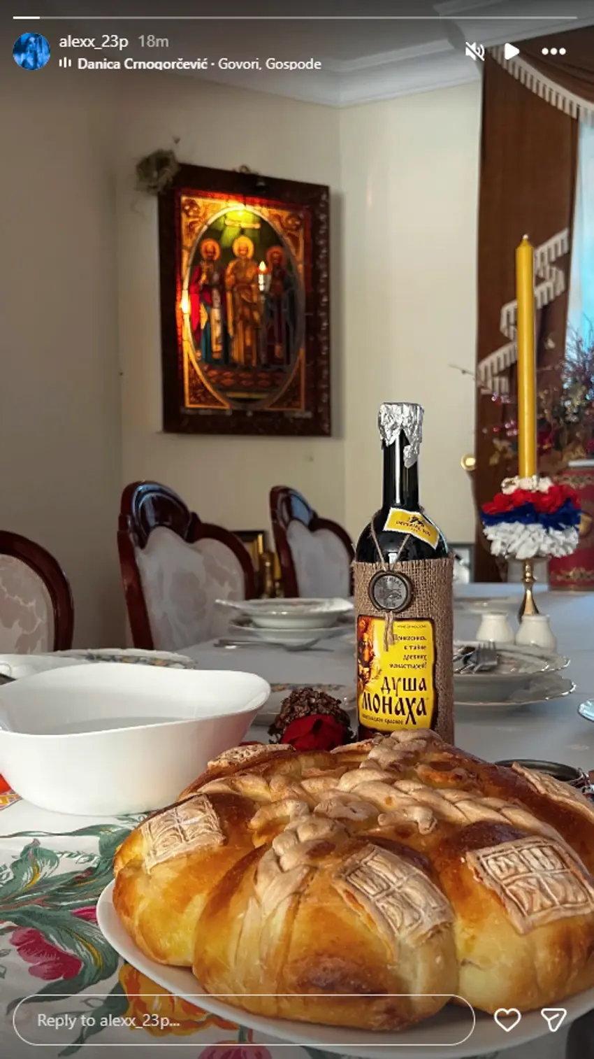Postavljen sto, slavski kolač, sveća i velika ikona na zidu, sve to smo mogli da vidimo u Aleksandrinoj objavi.
