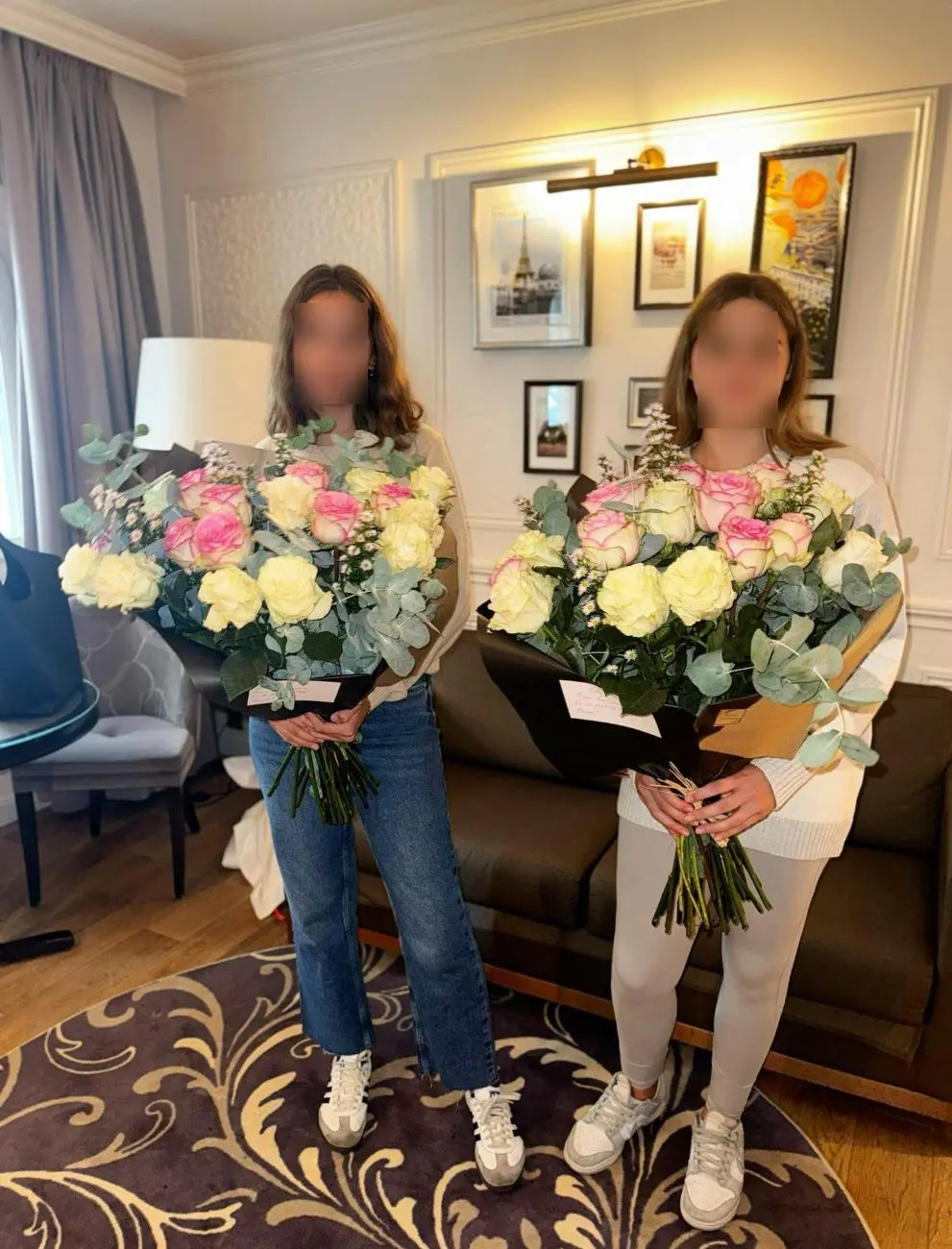 Karleuša je na Fejsbuk profilu podelila fotografiju svojih ćerki Atine i Nike na kojoj poziraju sa buketima cveća i obratila im se emotivnim rečima.