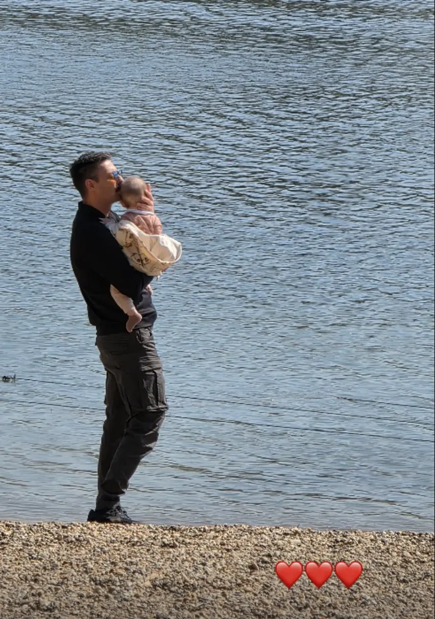 Milan je pozirao pored vode i u naručju držao Despota kojeg je ljubio u glavu.