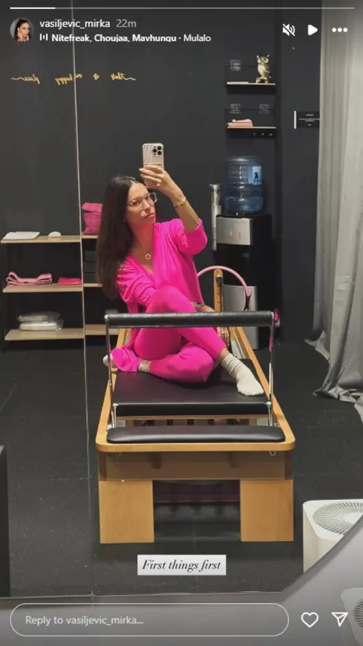 Ipak, nije sve samo u tanjiru, već Mirka redovno i trenira. Sada je objavila fotografiju sa treninga, tačnije pilatesa na kojem je redovna.