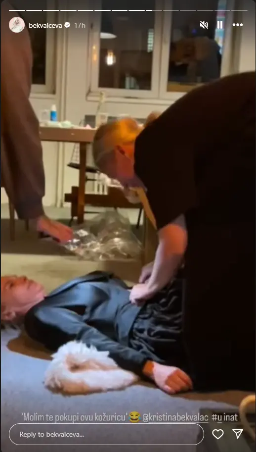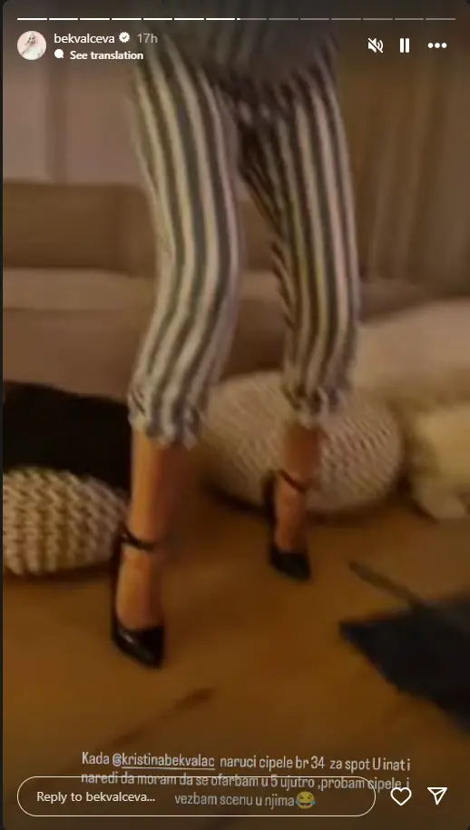 "Kad Kristina naruči cipele broj 34 i naredi da moram da se ofarbam u 5 ujutru, probam cipele i vežbam scenu u njima", napisala je ona u opisu ovog videa.