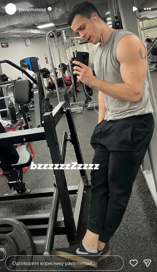 Pavle Mensur je pozirao tokom treninga u trenerci i majici bez rukava te je njegov biceps došao u prvi plan.