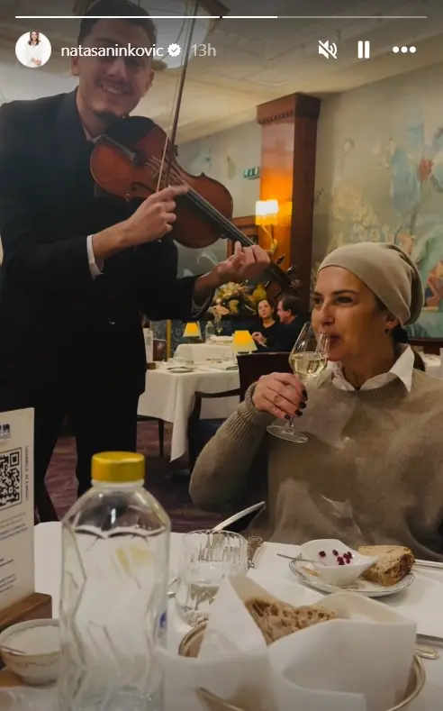 Foto: Antonio Ahel/ATAImagesGlumica Nataša Ninković objavila je snimak iz provoda na kom se vidi kako uživa i ispija vino, dok joj na večeri violinista svira na uvce.