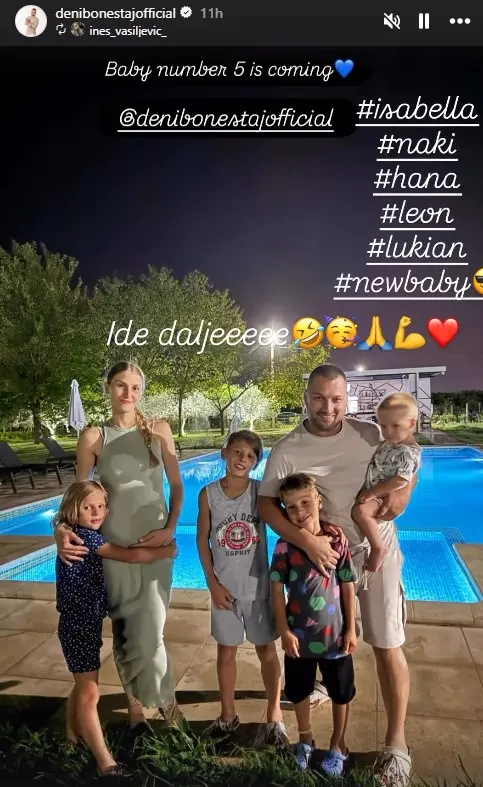 Podsetimo, Boneštaj se prvi put jako mlad oženio, a u tom braku je dobio jednu ćerku, dok iz drugog braka ima četvoro dece – tri sina i jednu ćerku, a sada je na putu još jedna beba.