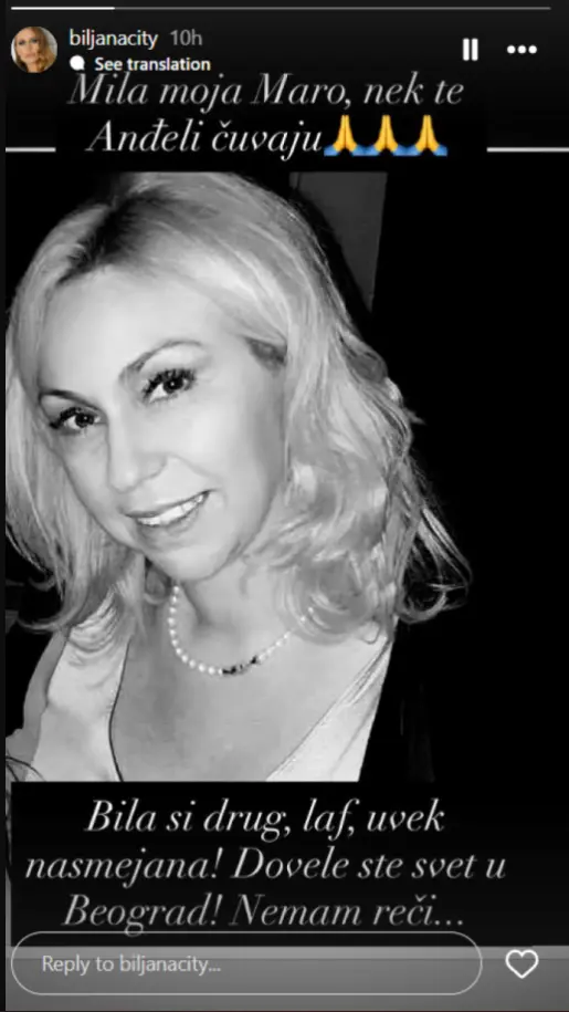 "Mila moja Maro, neka te anđeli čuvaju", napisala je emotivno, a zatim dodala:
