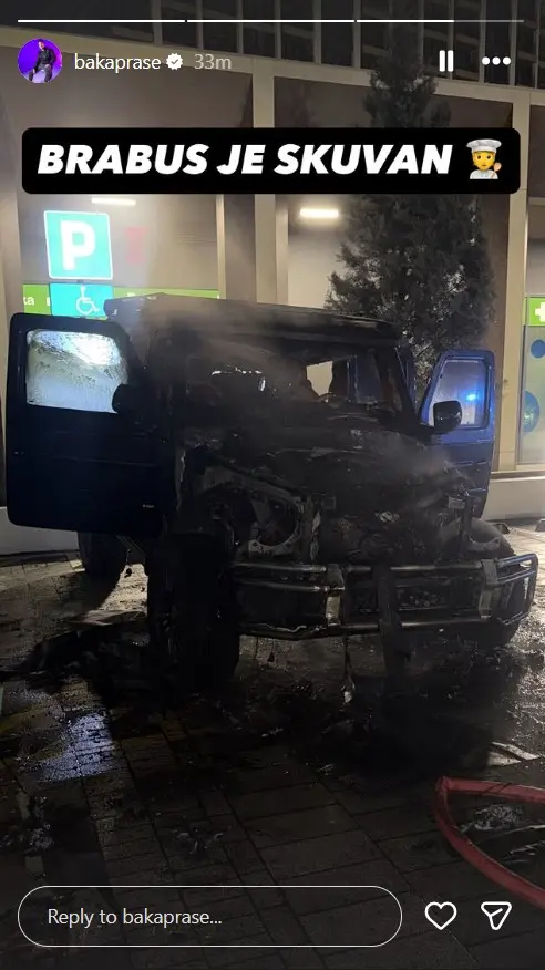 Foto: Instagram printscreen, bakapraseSkupoceni automobil u vlasništvu Bake Praseta, vredam čak 500.000 evra, zapaljen je noćas u Beogradu na vodi.