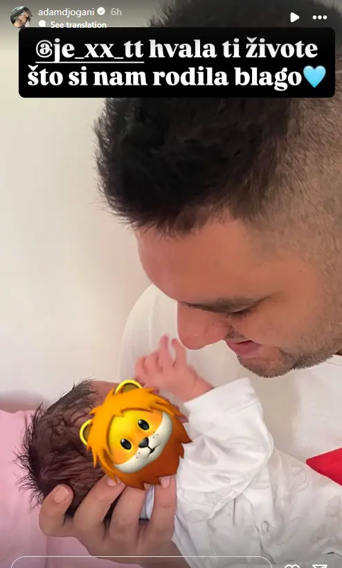 "Hvala ti, živote, što si nam rodila blago", naveo je u opisu Adam Đogani, koji se obratio svojoj supruzi Jeleni.