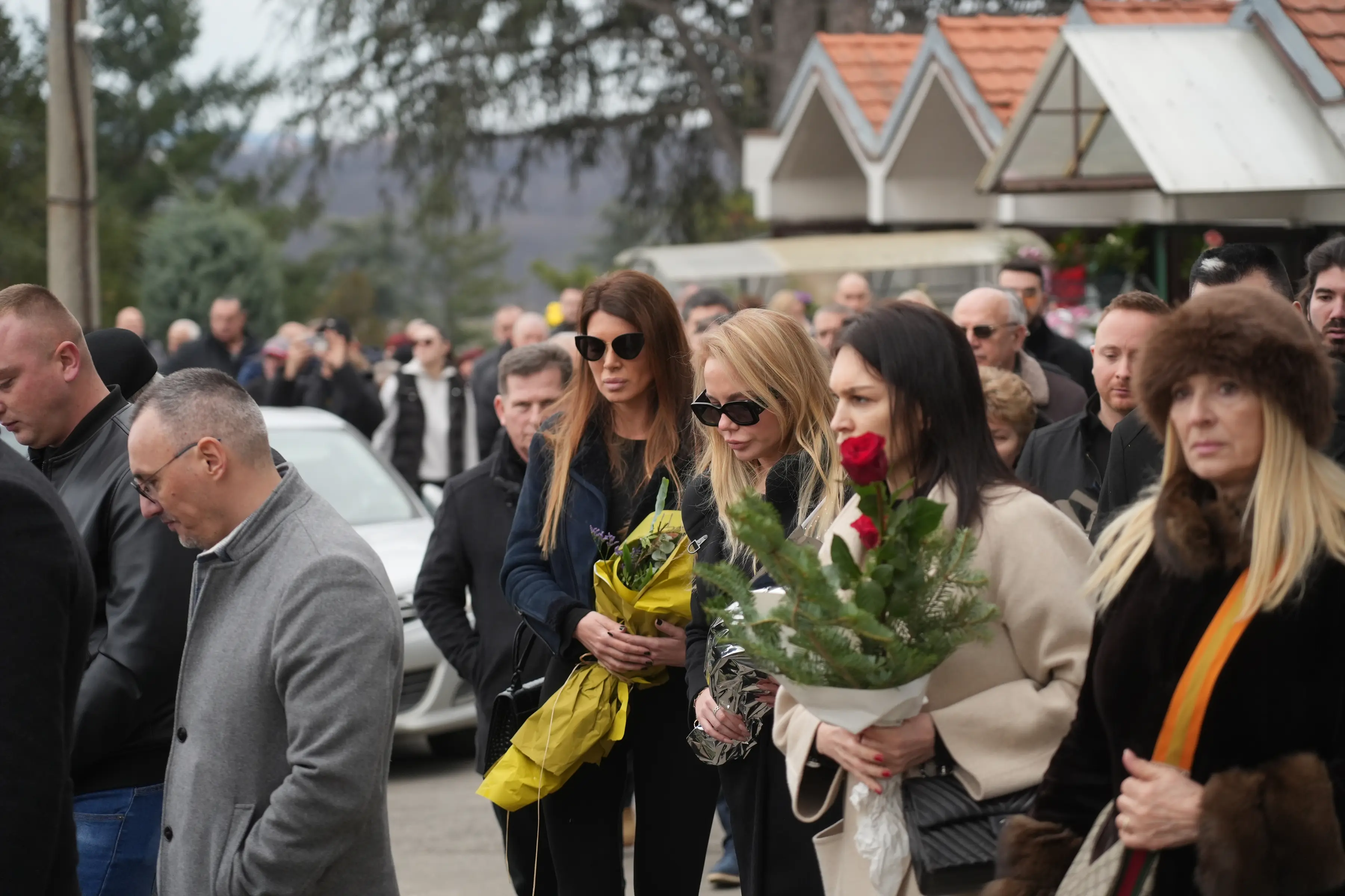 Goga je na sahranu došla u crnom kaputu i naočarima, a podršku joj je pružio i bivši muž Uroš Domanović.